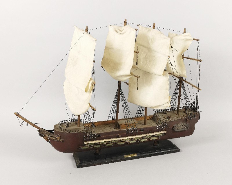 drewno, płótno, mosiądz; 58 x 77 x 26 cm;