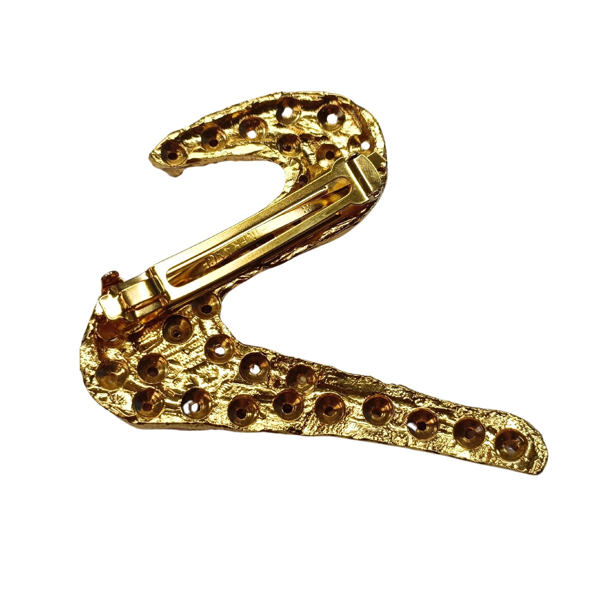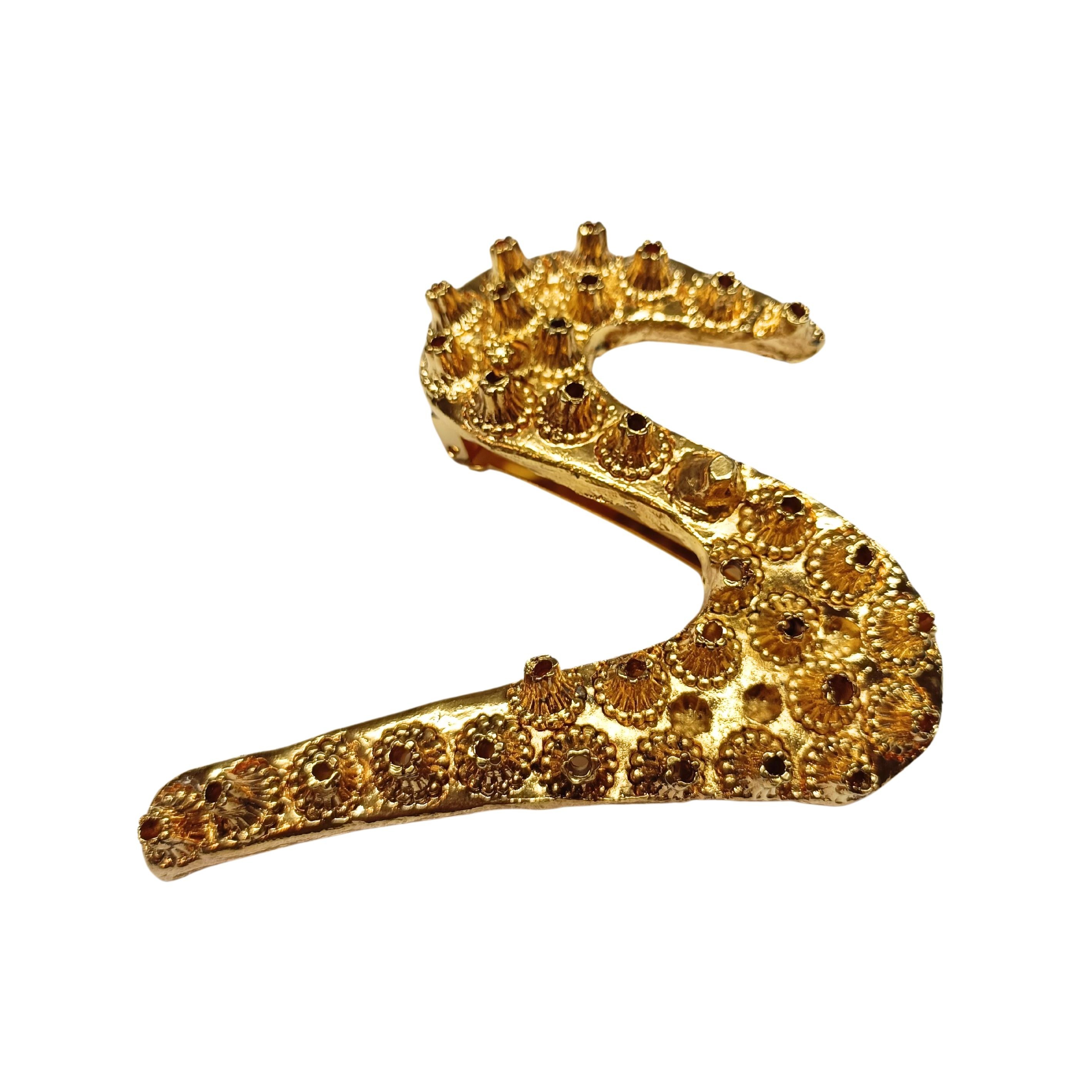 Duża, ozdobna klamra do włosów w kolorze złotym.