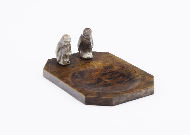 wys. (całkowita) 4 cm, popielniczka 11,2 x 8,2 cm, małpki: wys. 3-3,5 cm; bez sygnatur;