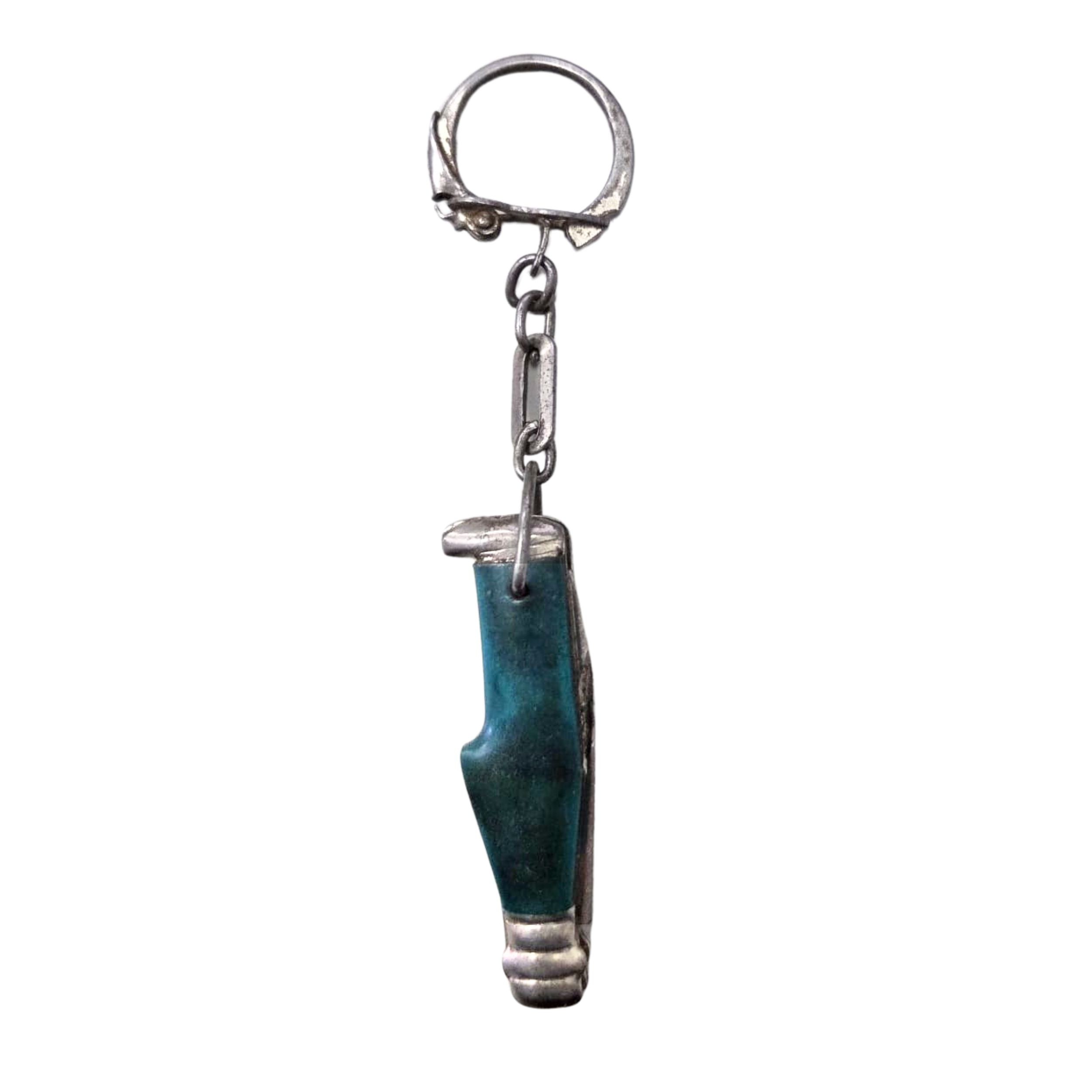 - butelka ze scyzorykiem (zielona) -  wymiary całkowite: 10,5 x 1,5 cm, długość ostrza: 4 cm, brak otwieracza (wyrwany)