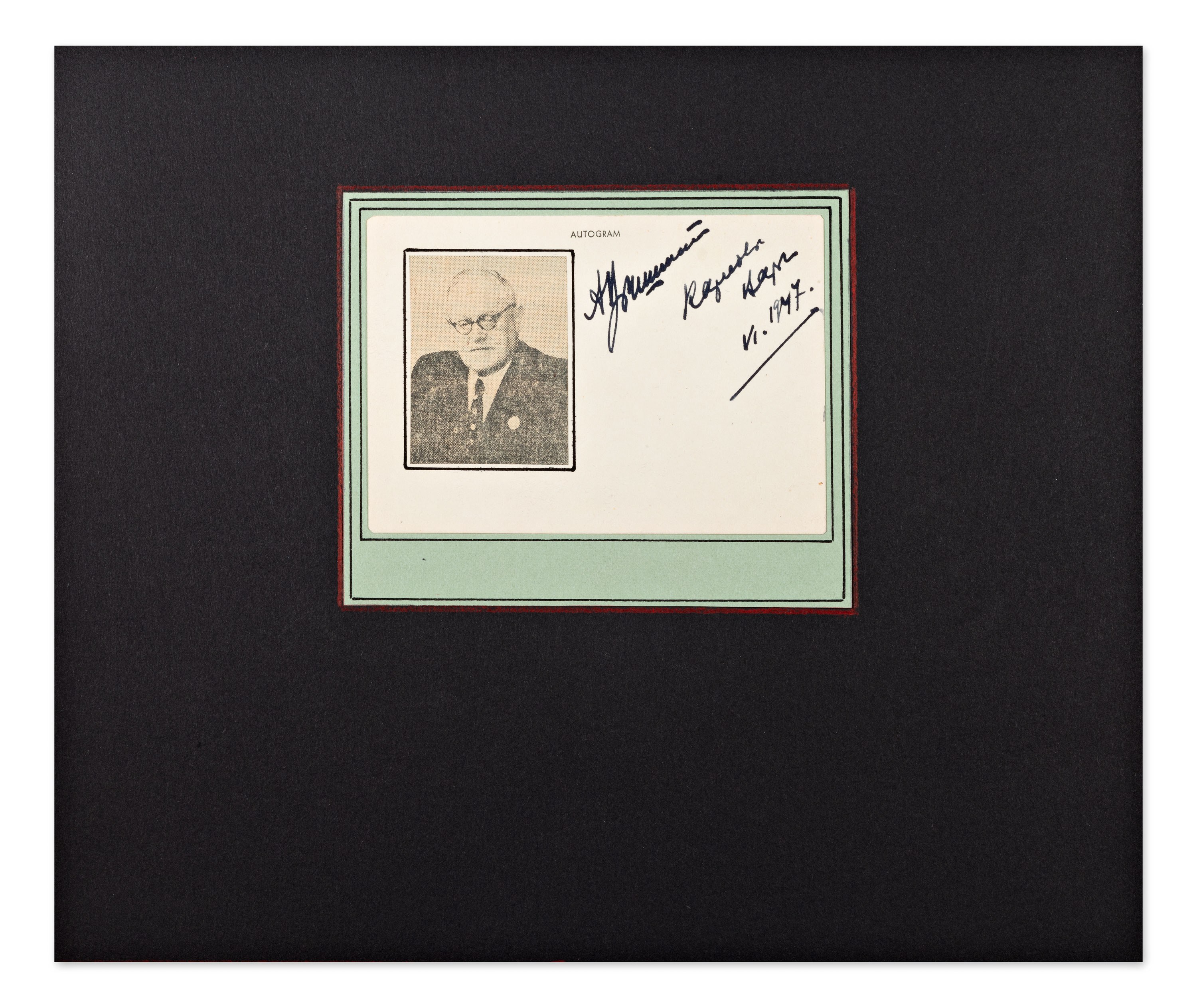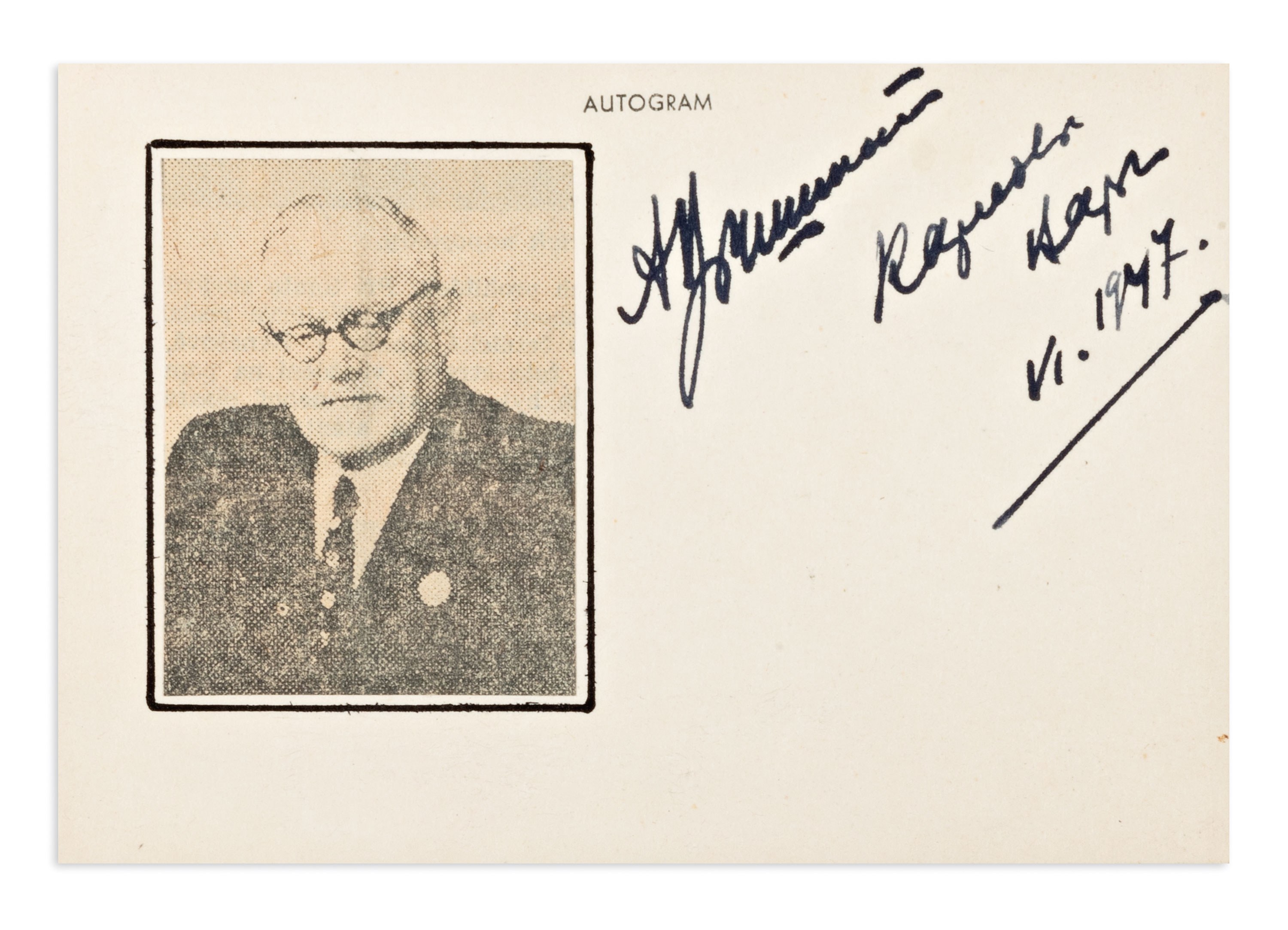 Clipping with a portrait and handwritten signature of Andrei Vyshinsky, a Soviet lawyer, politician, and diplomat, who was known as the chief prosecutor during Stalin’s purges in the 1930s. Vyshinsky was the author of the theory of socialist legality and served as the Minister of Foreign Affairs of the USSR from 1949 to 1953.最近瀏覽過的