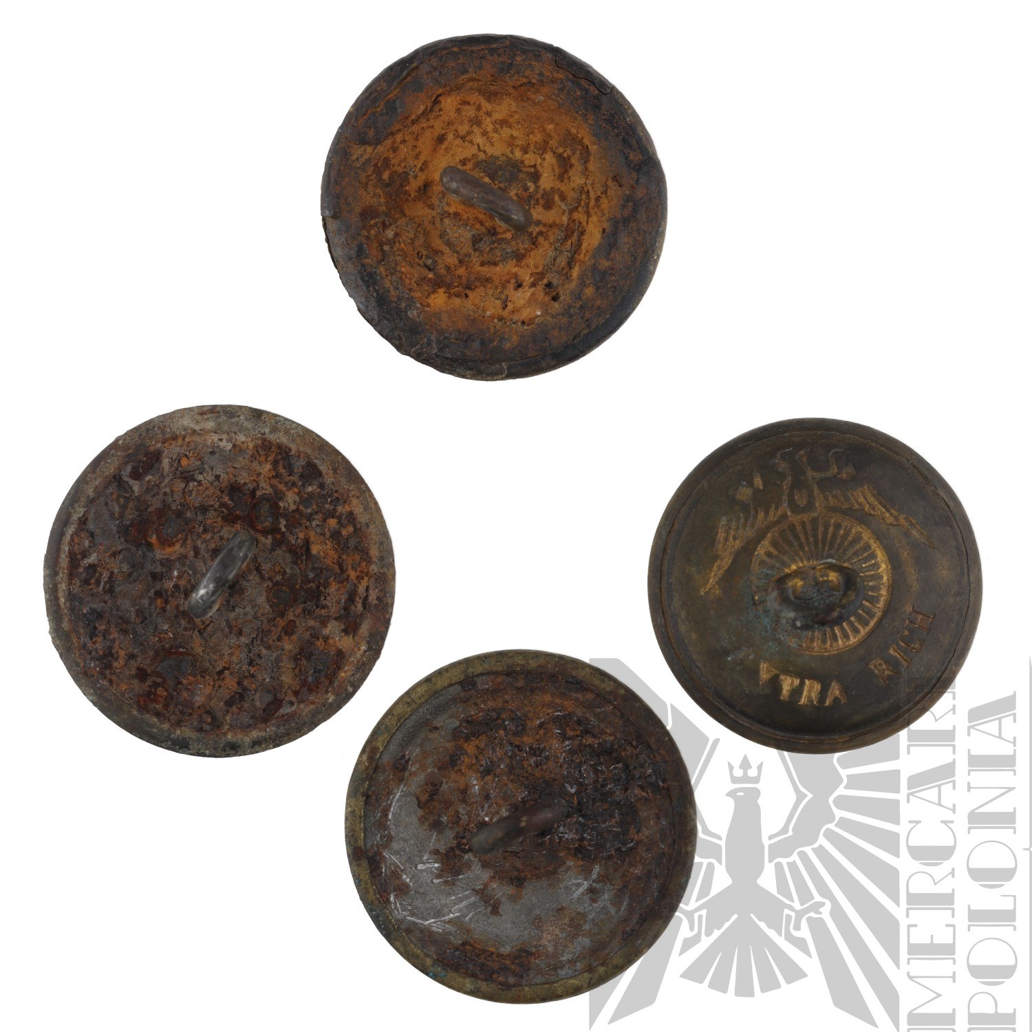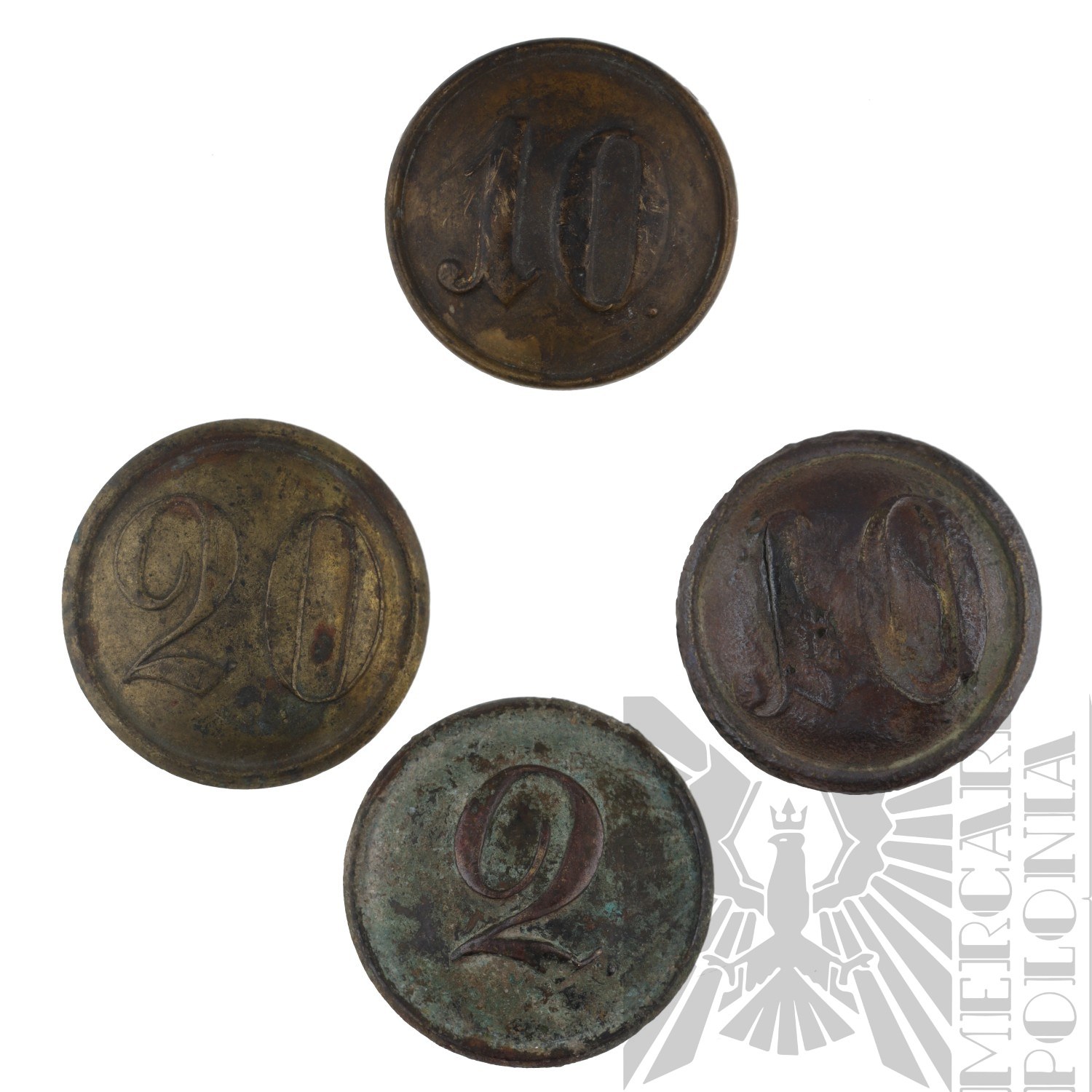 Austro-Węgry - Cztery Guziki Pułkowe z Cyframi, 10, 20, 2