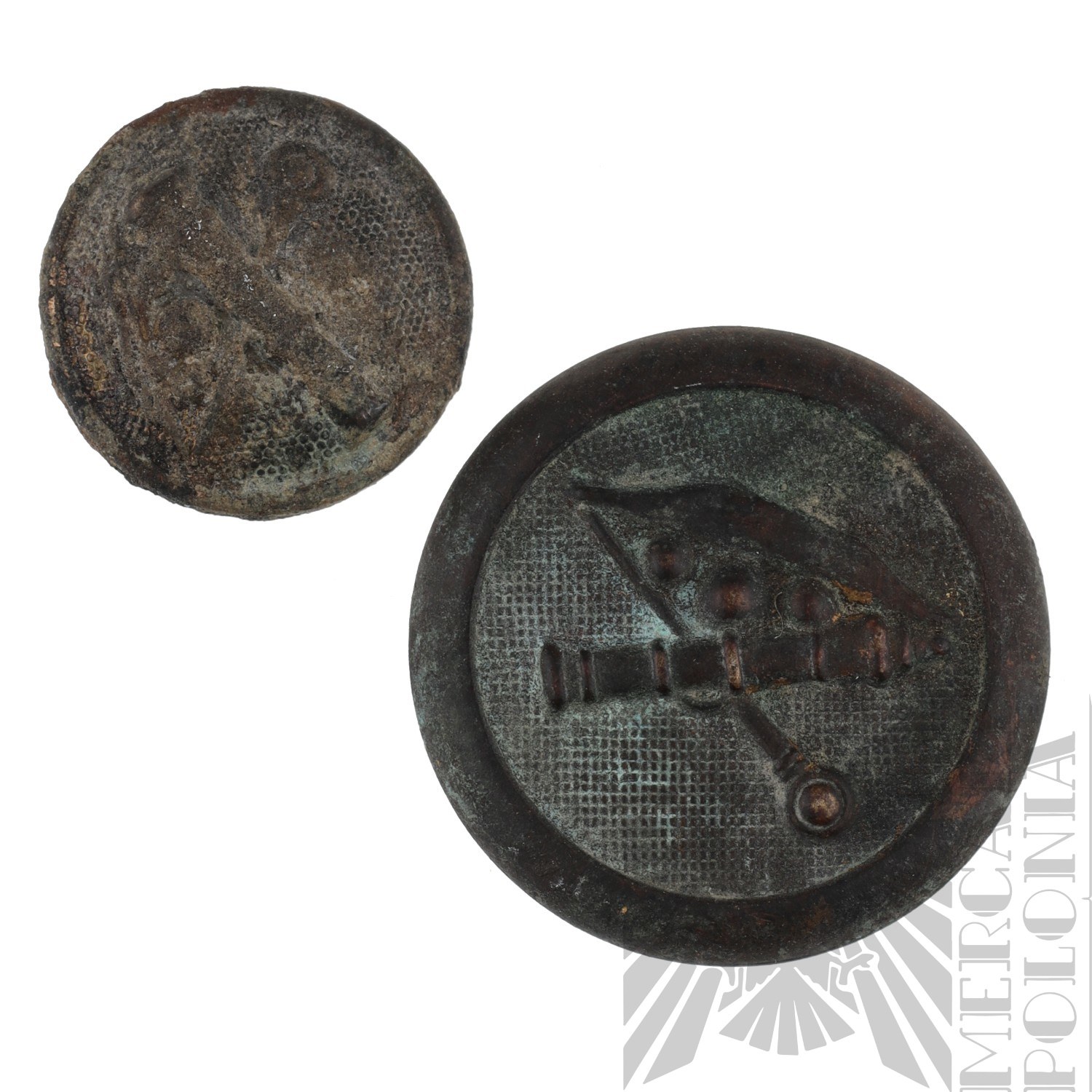 Dwa guziki Artylerii Austro-Węgierskie. Średnica 24mm, 16.4mm. Stan jak na zdjęciach.