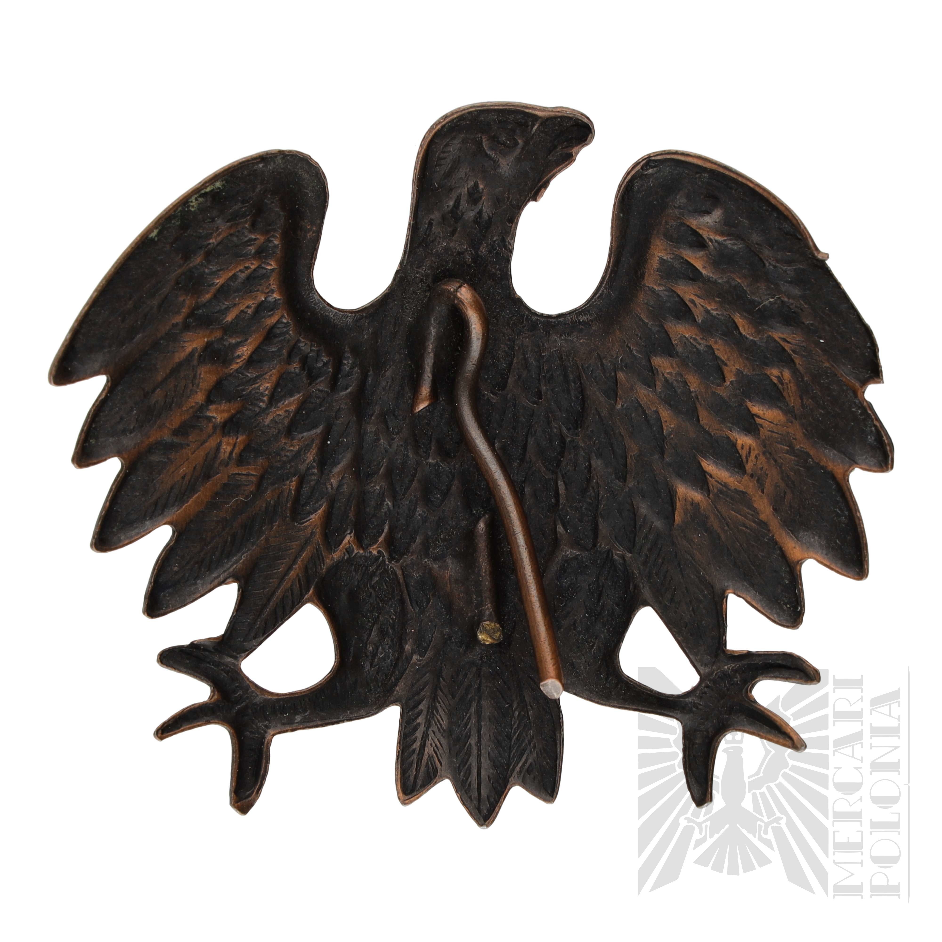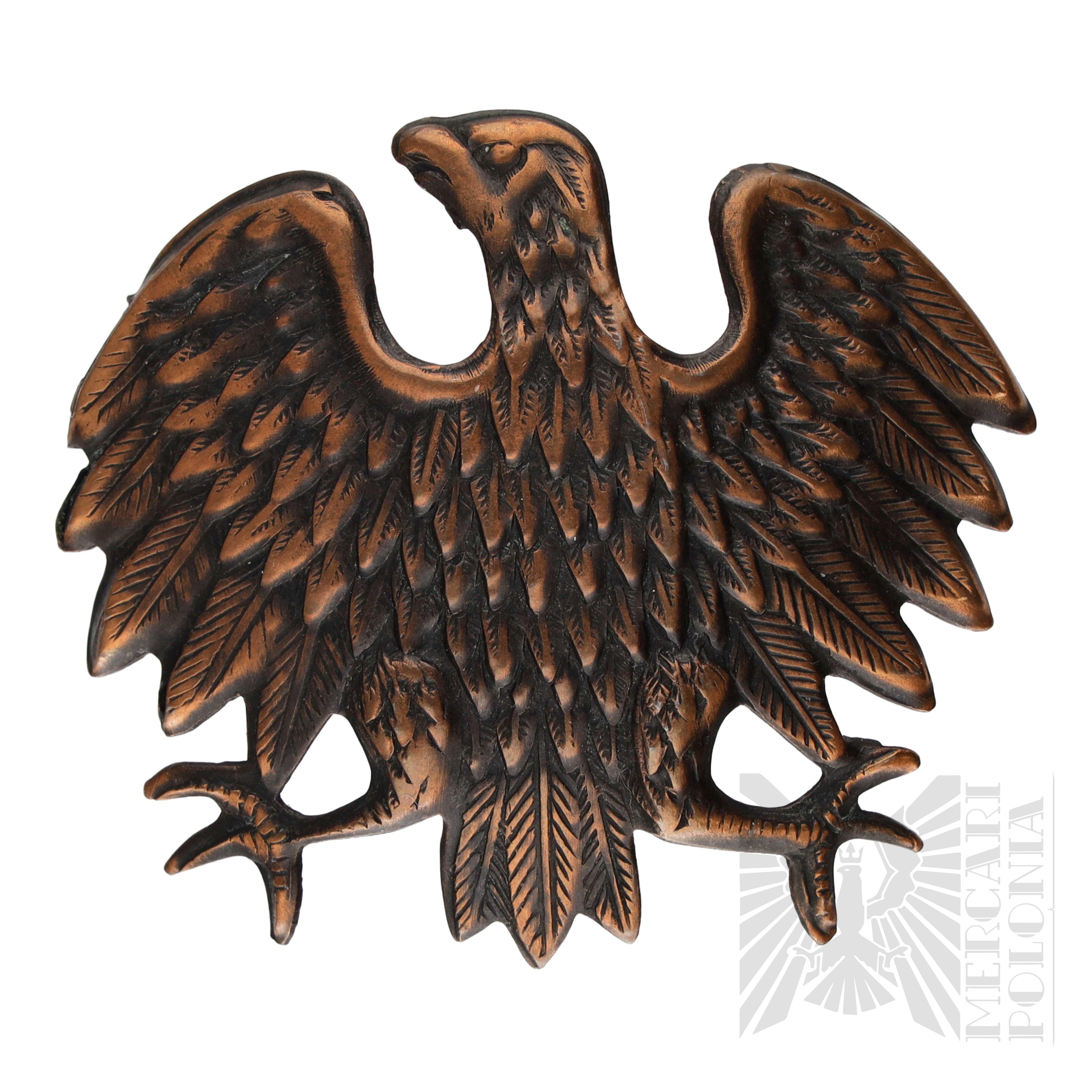 Zaprojektowany przez Janinę Broniewską, inspirowany orłem piastowskim znajdującym się na sarkofagu Władysława Hermana i Bolesława Krzywoustego projektu Zygmunta Vogela z 1824 roku. Bity matrycowo, wykonany jest blachy stalowe, magnetyczny, na rewersie fragment zaczepu w postaci ułamanych wąsów.