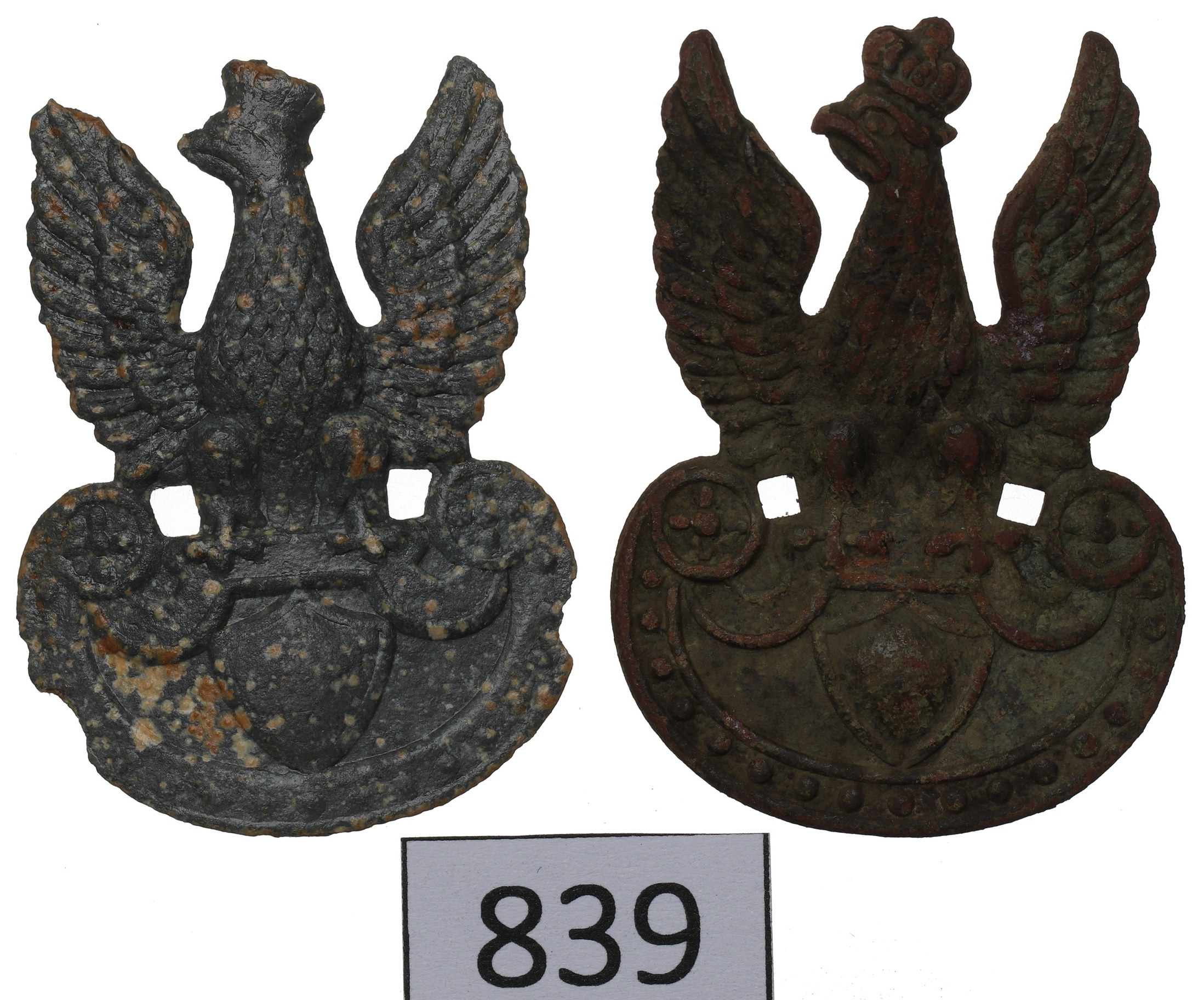Zestaw dwóch orzełków, tzw. wzór 23 przeznaczony do noszenia na furażerkach.