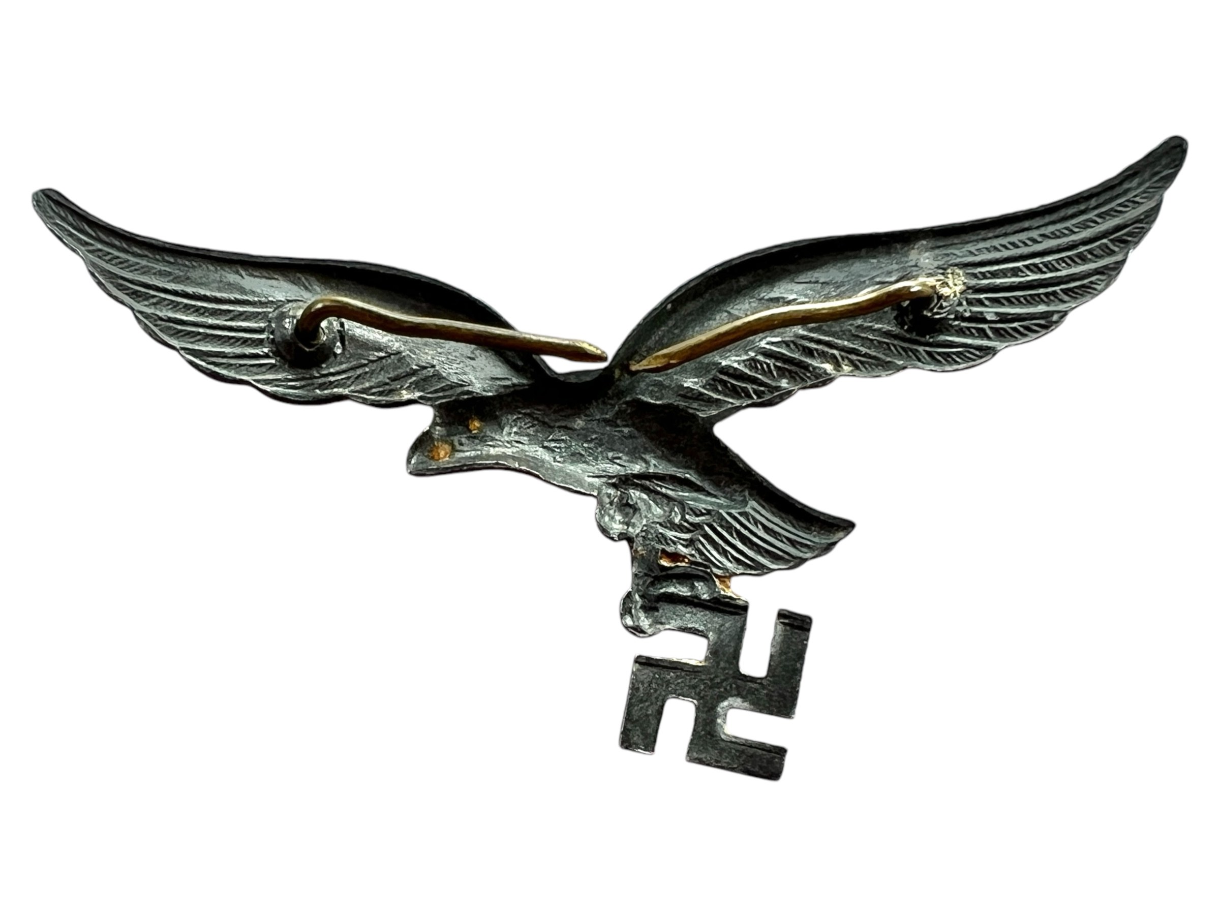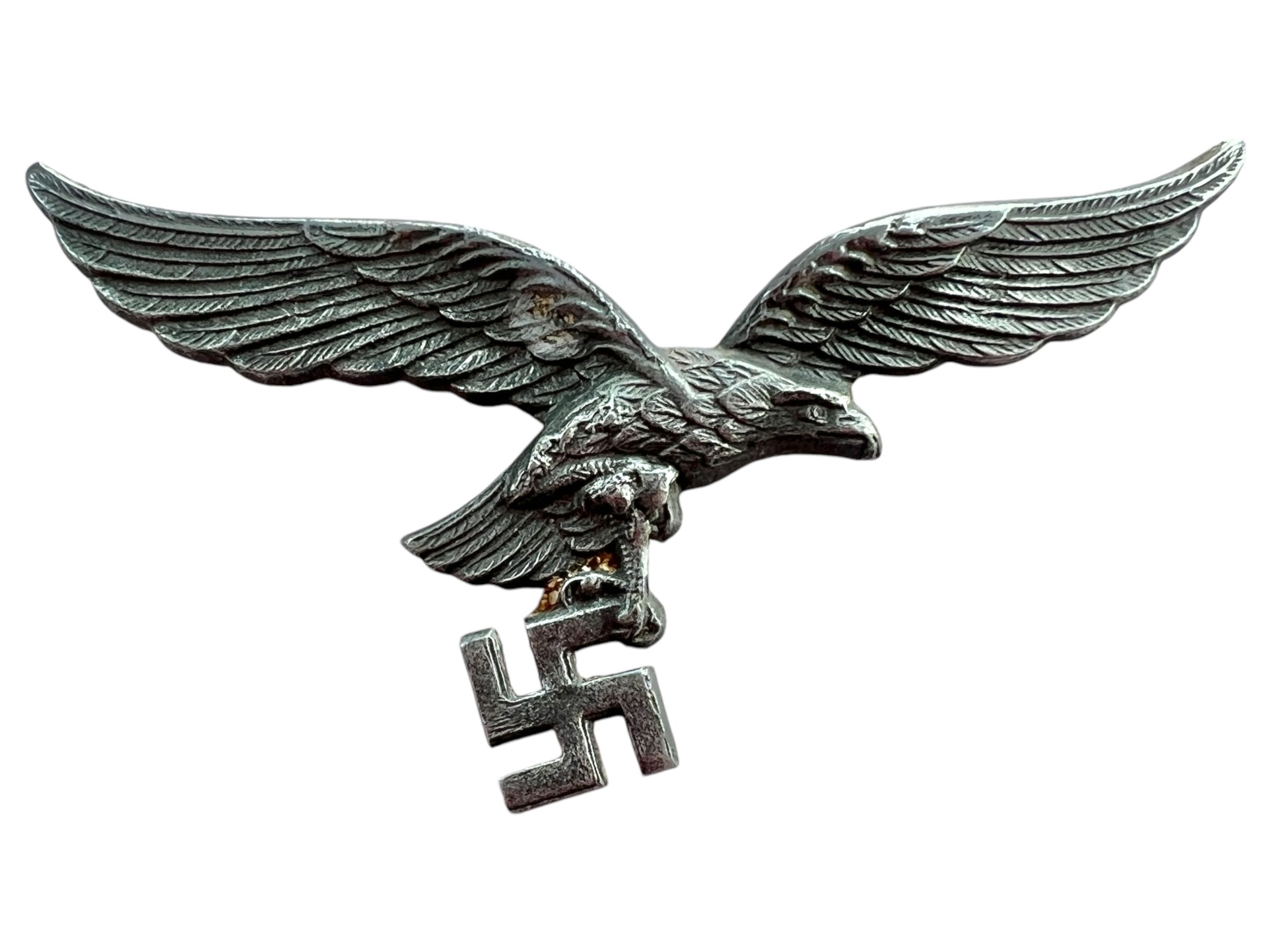 Very good complete Luftwaffe visor cap eagle. Both prongs present. Great piece to restore damaged eagle of Your cap.
