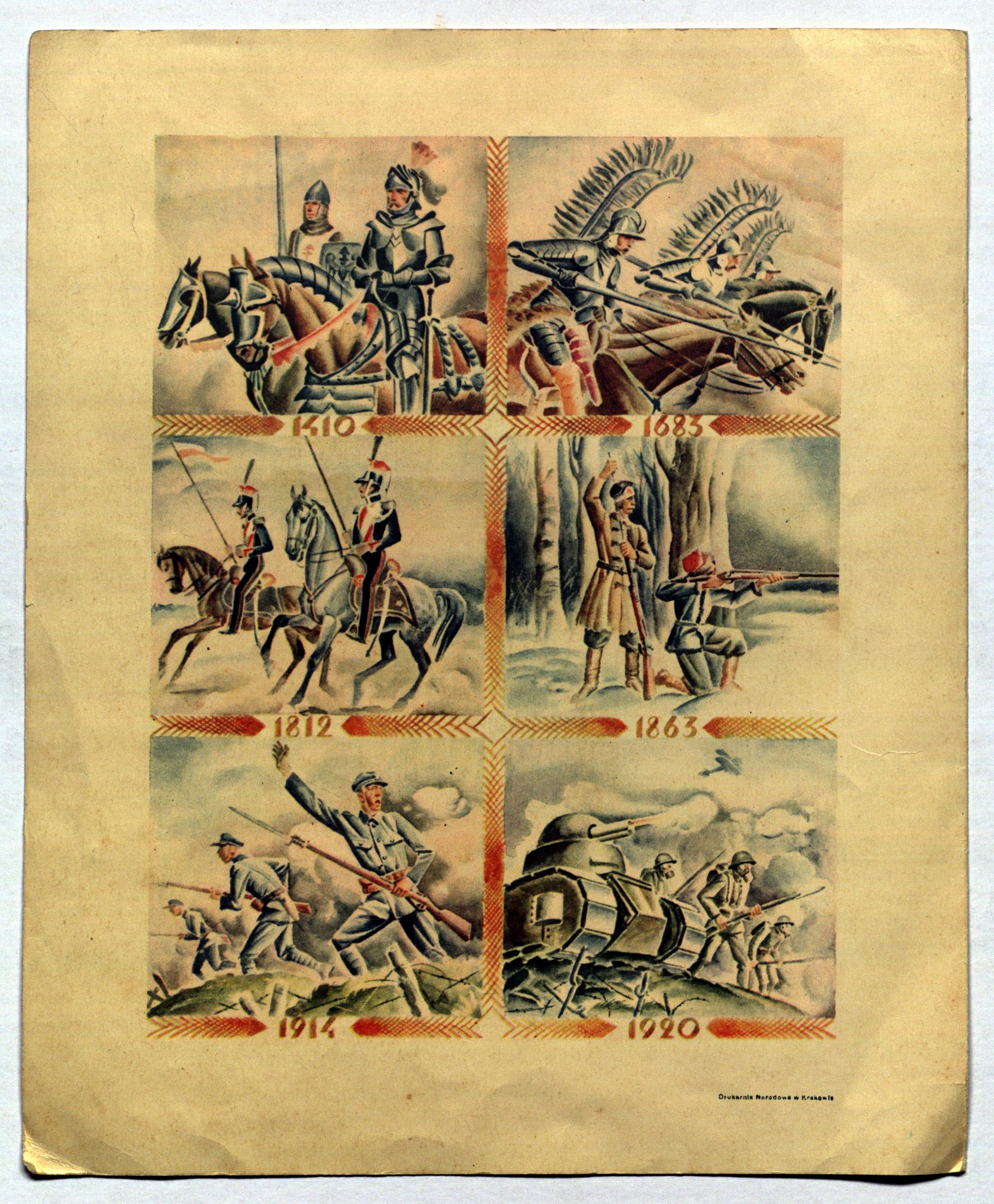str. 4 obrazki polskich rycerzy i żołnierzy z 1410, 1683, 1812, 1836, 1914,