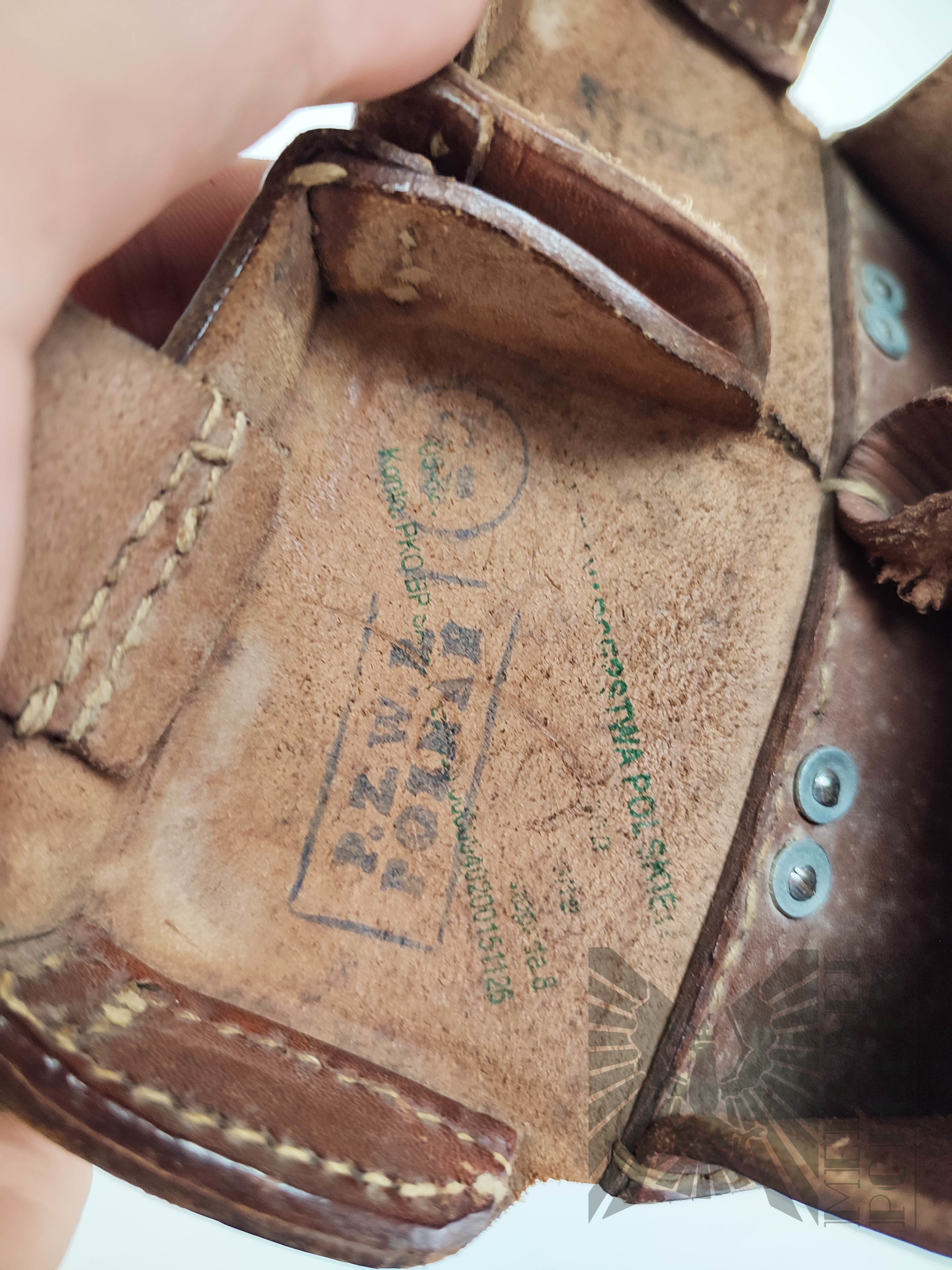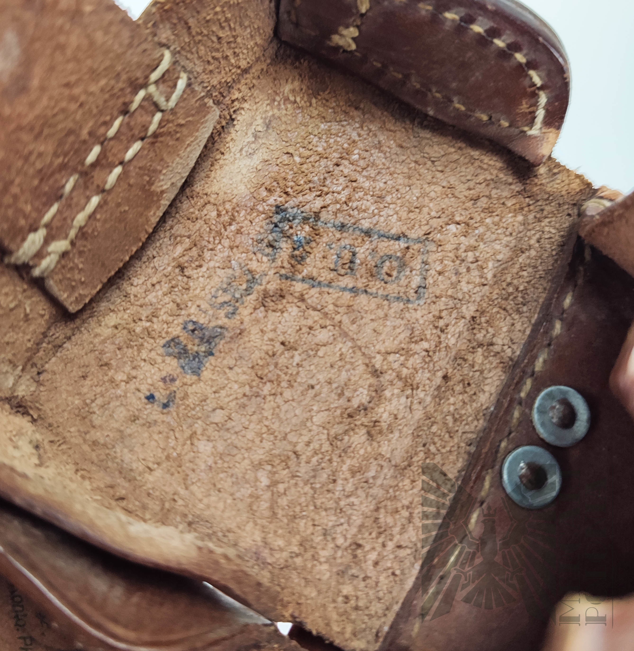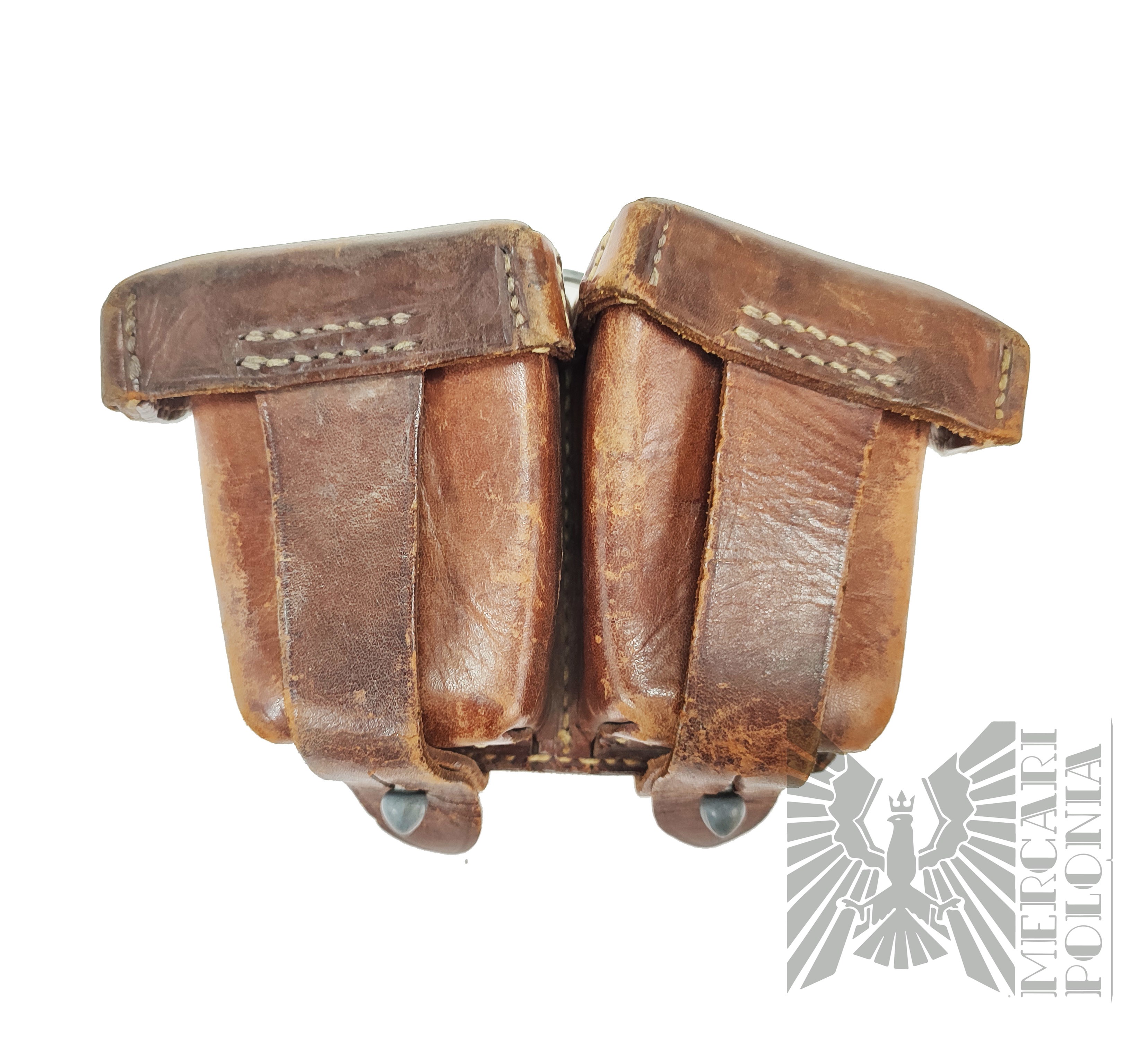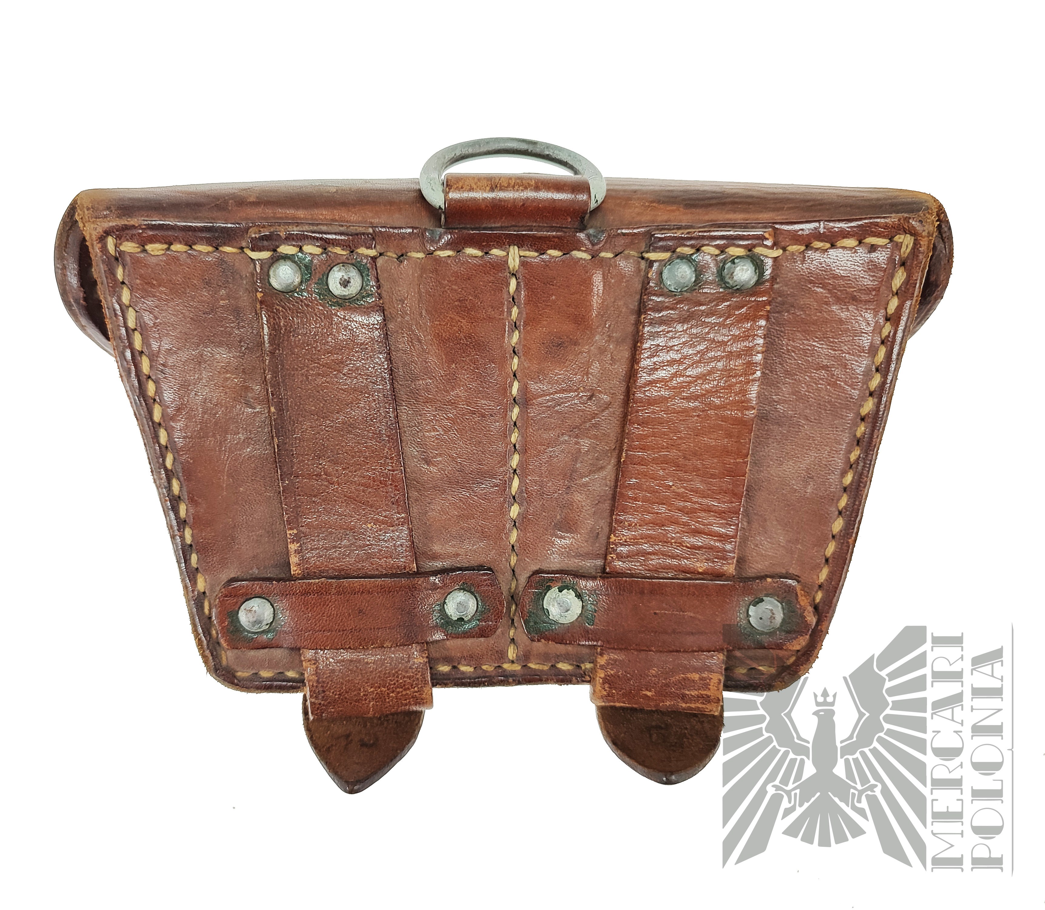 Podwójna skórzana ładownica do Mosina. Ładownica sygnowana na klapach.
