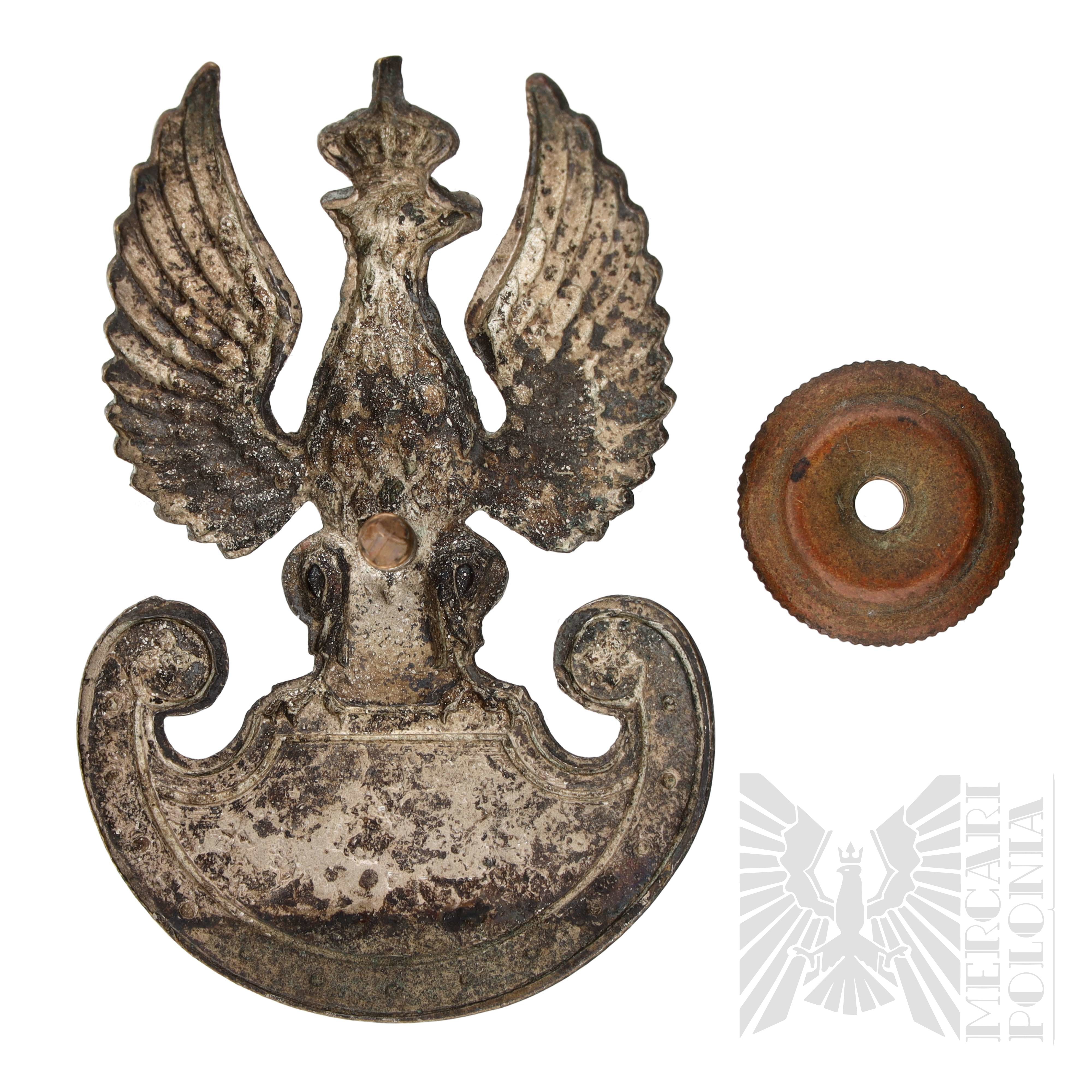 Odznaka w formie orła z rozpostartymi skrzydłami siedzącymi na amazońskiej tarczy. Głowa jest zwieńczona zamkniętą koroną. Na rewersie słupek gwintowany z nakrętką oryginalna stosowaną przez J.R Gaunta. Bity matrycowo. Orzeł wykonany przez J.R Gaunta w Londynie.