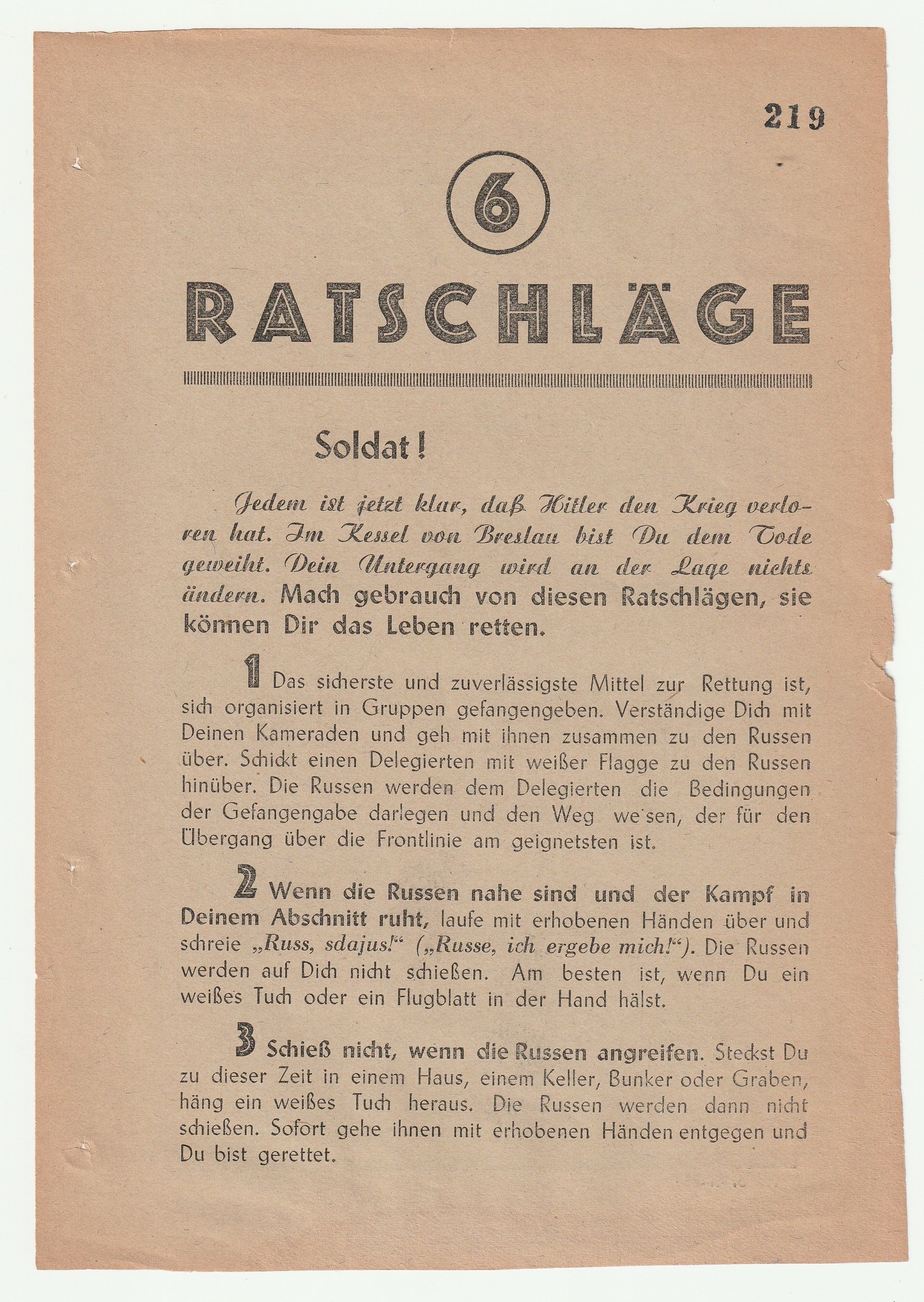 RATSCHLÄGE („Porady”) – 06.04.1945. Poradnik dla żołnierza gotowego się poddać, a zarazem