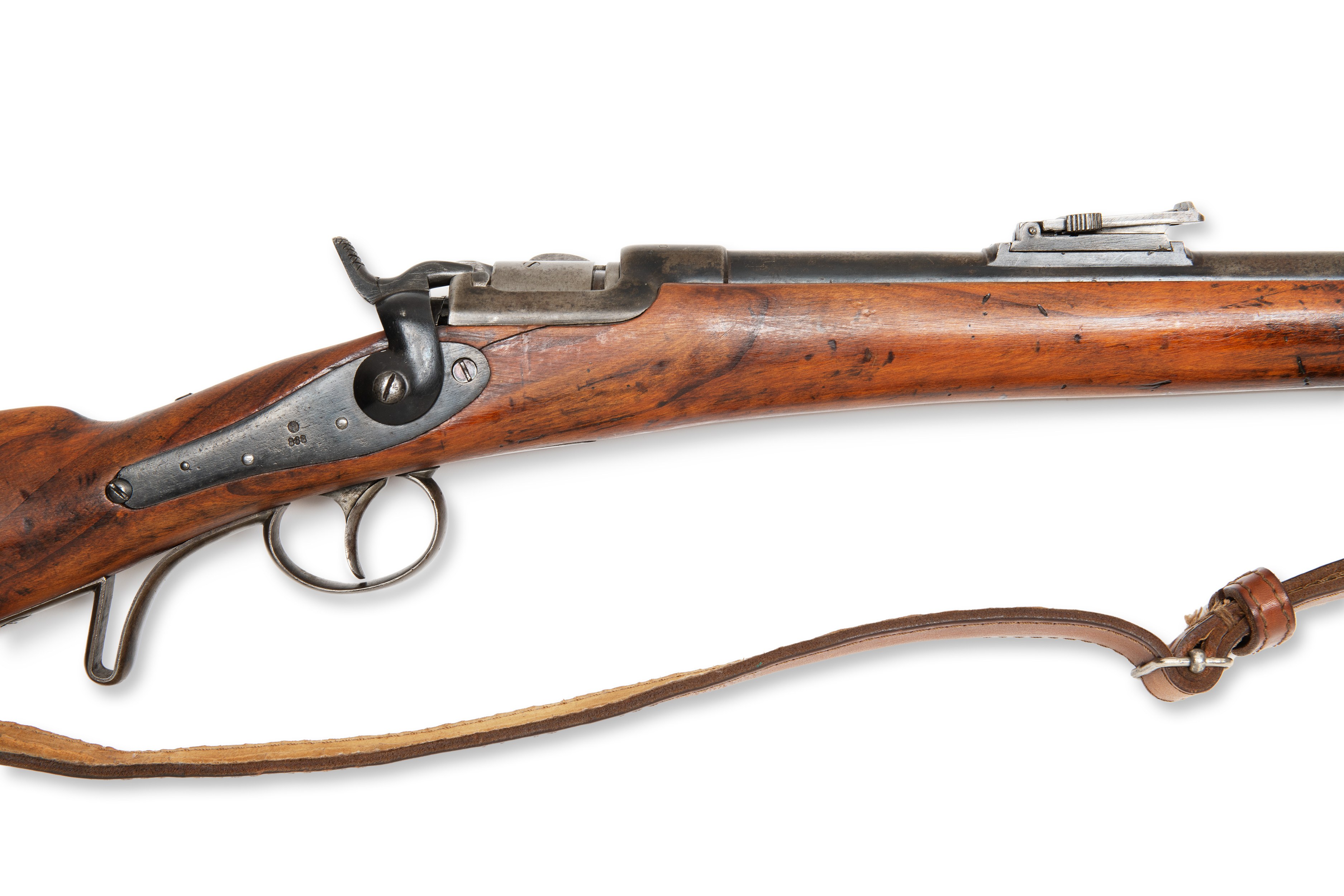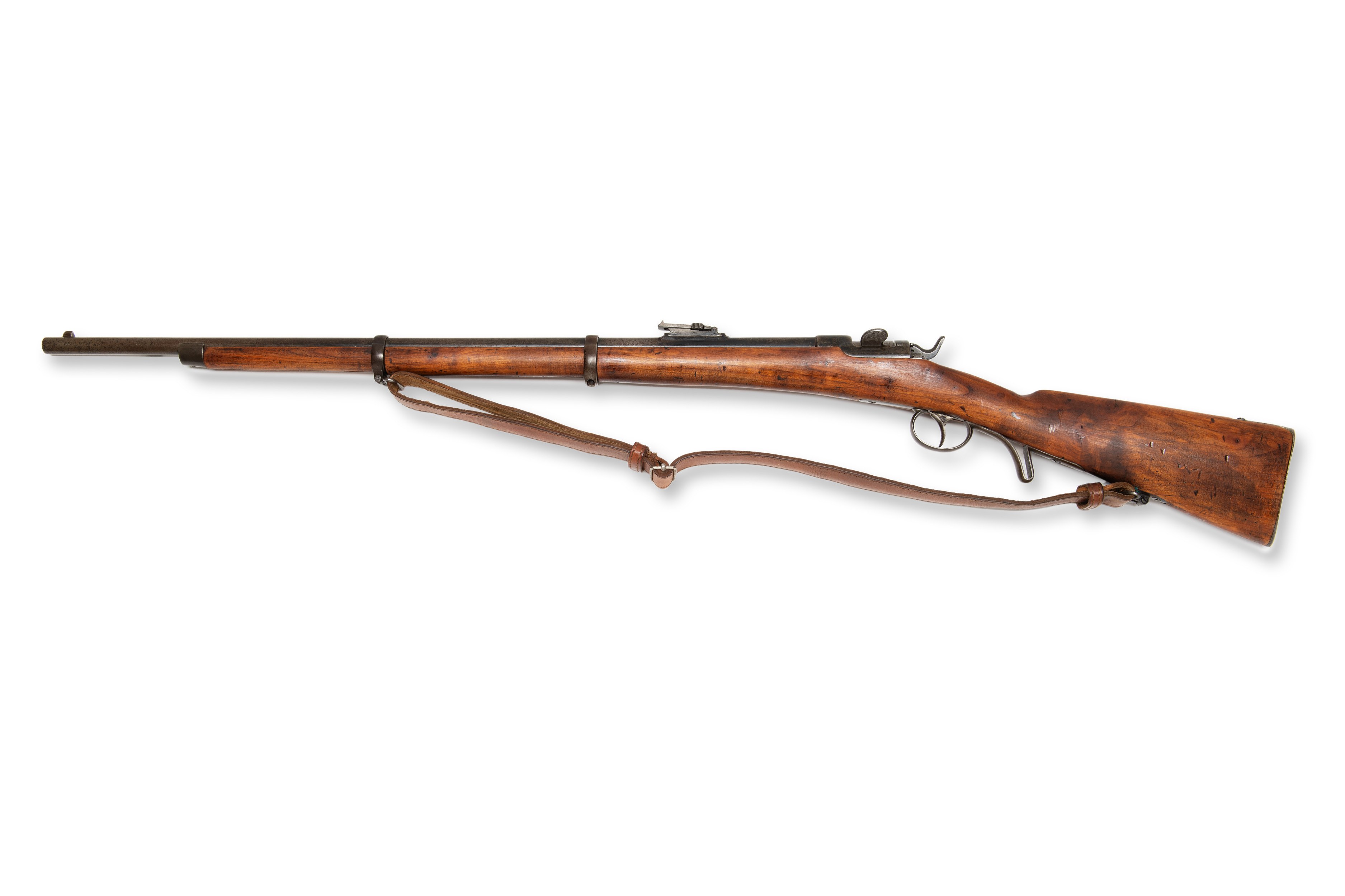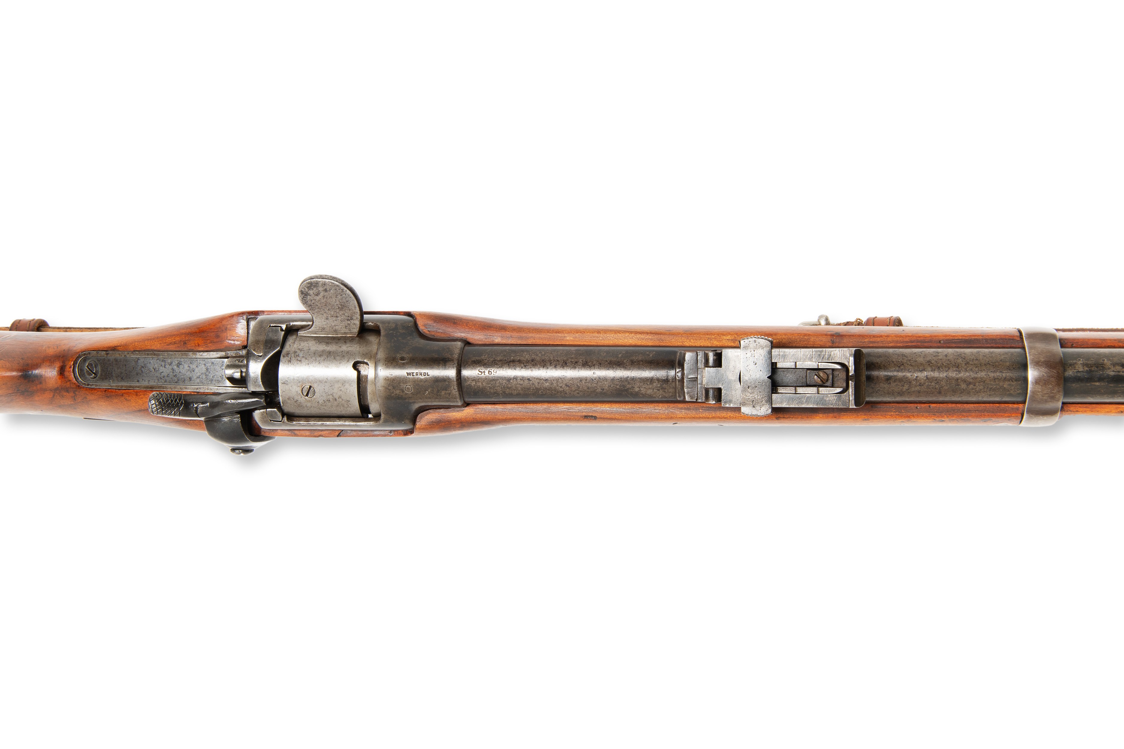 Werndl model 1867 infantry and hunting rifle, made in Austria in 1868. The lock plate is marked "868", the bolt housing "Werndl", the barrel "St 69" and the buttplate "30.R./13,112.". This rifle is complete including the belt and shows signs of normal use. The Werndl 1867 was one of the important models of the time, combining long efficiency with comfort for infantry and hunters.***IMPORTANT NOTICE***