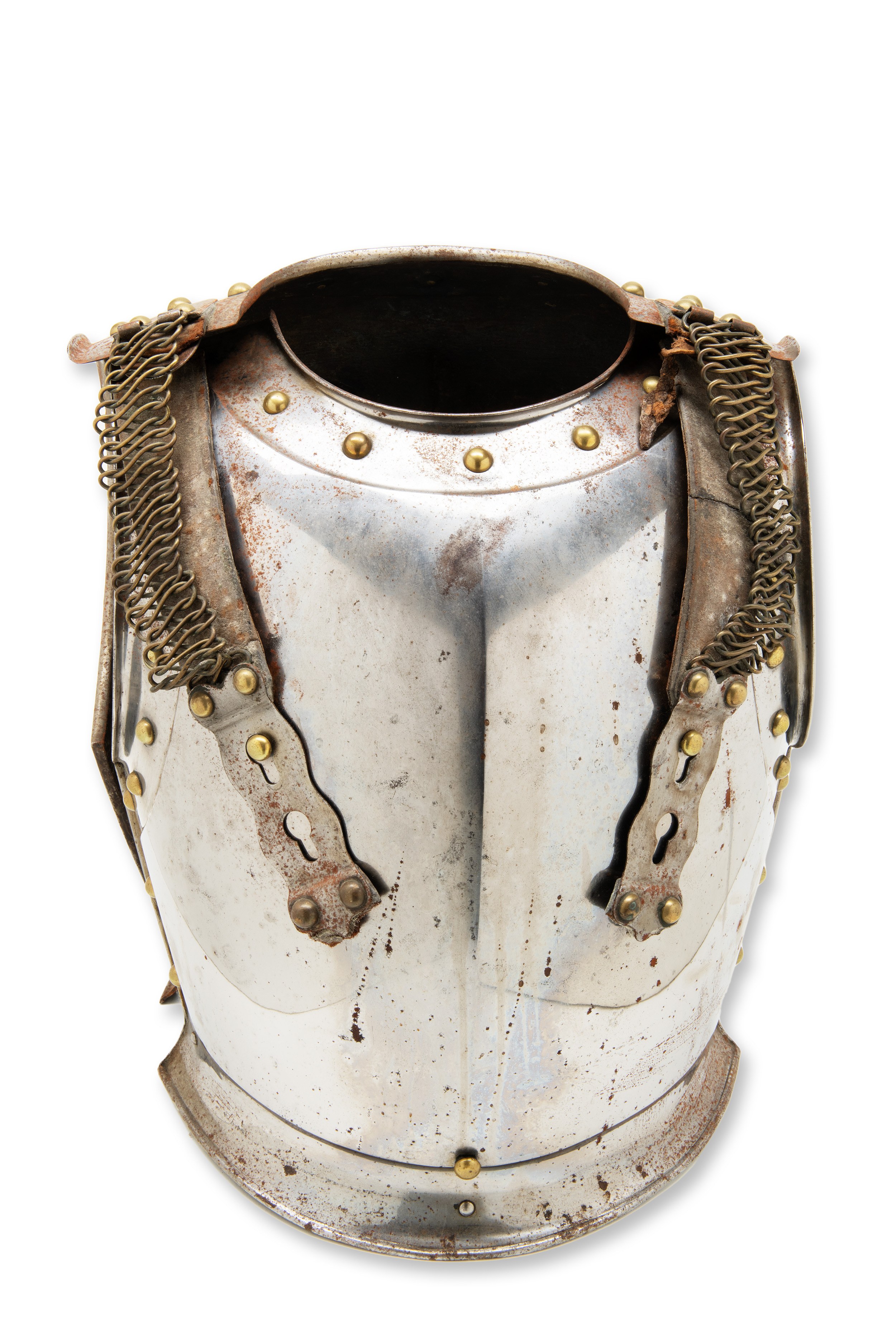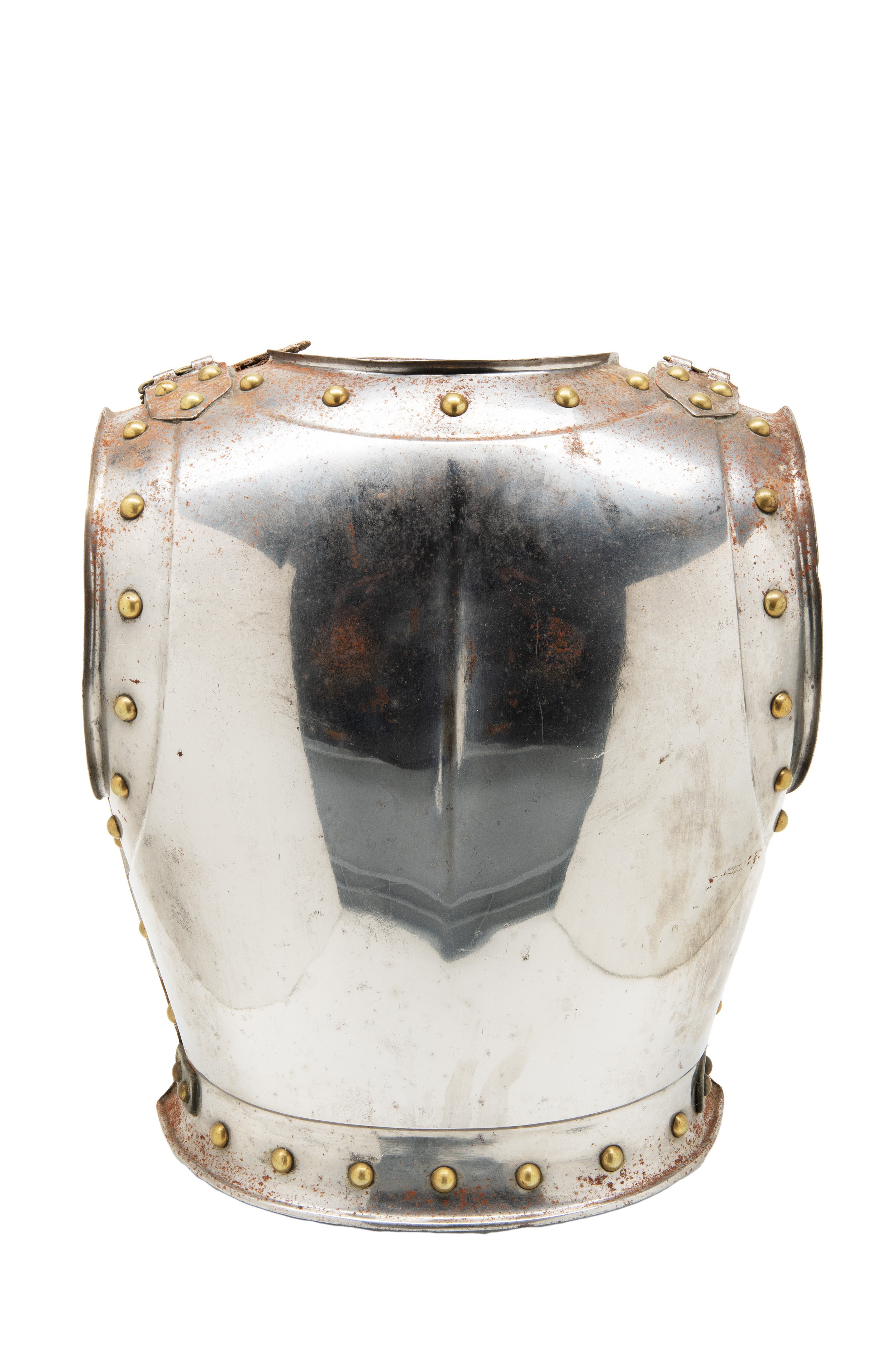 Front and rear plate of French cuirassiers, made in Klingenthal by Coulaux & Cie. The signature "Coulaux Klingenthal 1856" is on the lower edge of the front plate. Sheets include connecting straps, surface polished on the outside, blackened on the inside. There are areas of fine corrosion on the outer surfaces.***IMPORTANT NOTICE***