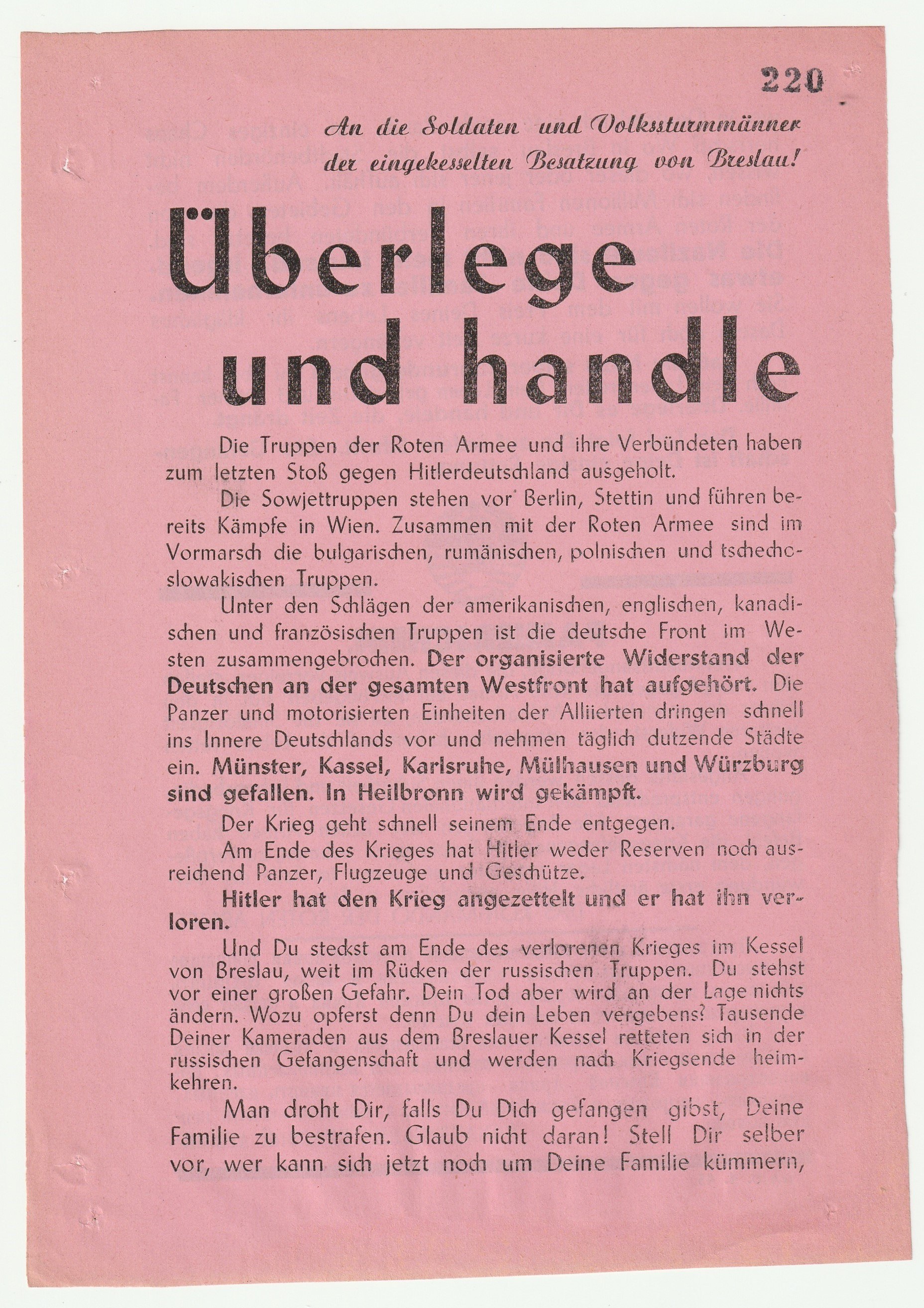 ÜBERLEGE und handle („Pomyślcie i działajcie”) – 08.04.1945. Informacja o dotarciu do