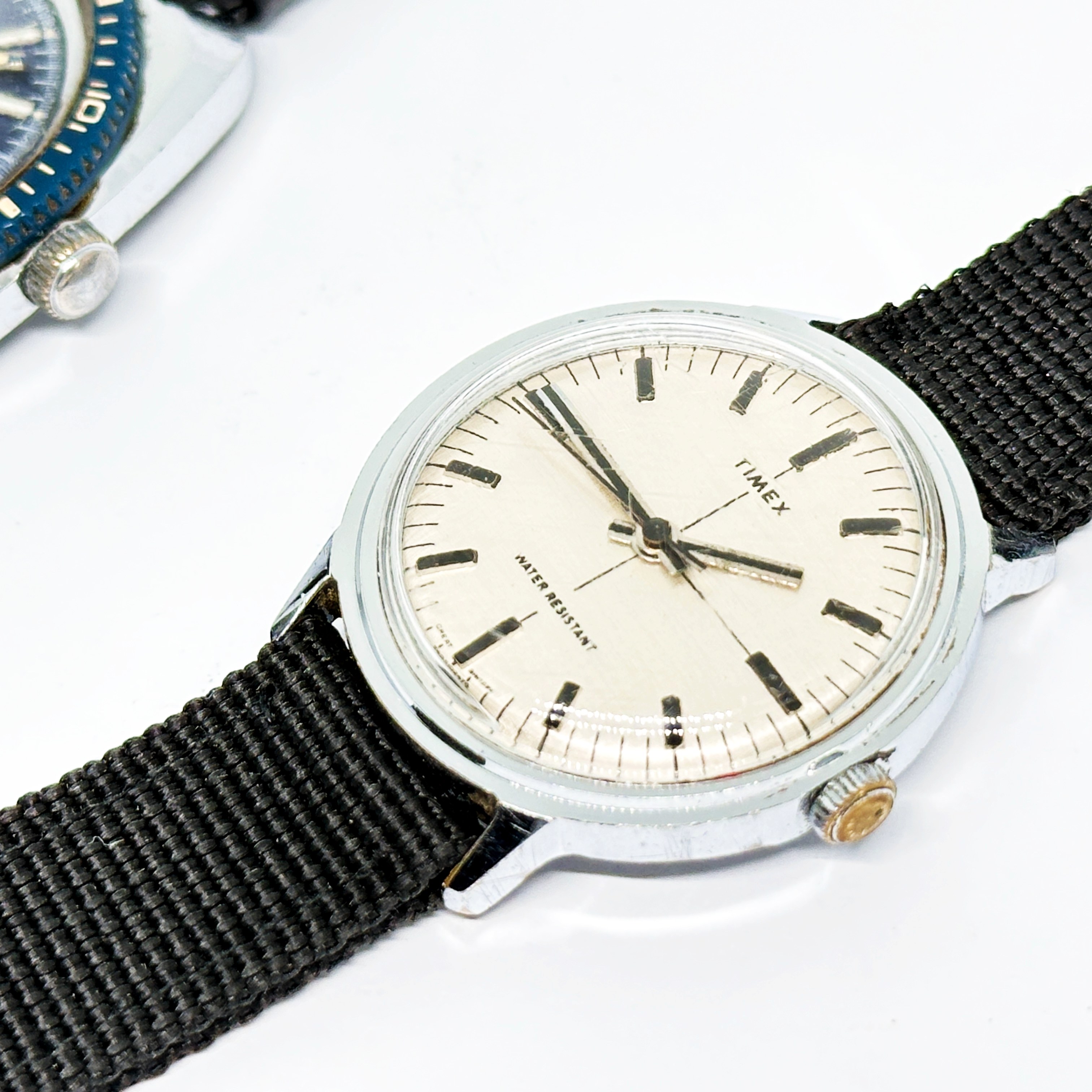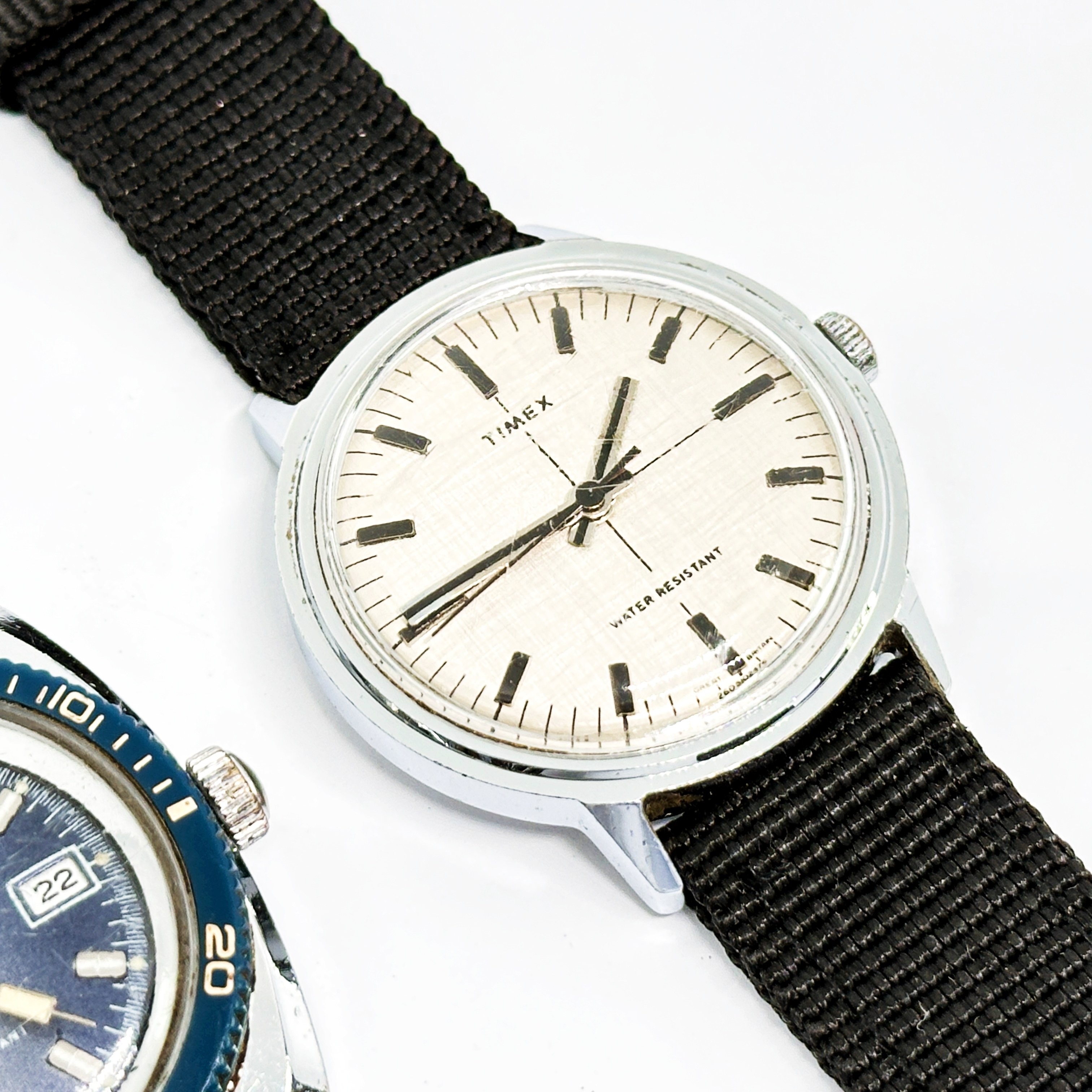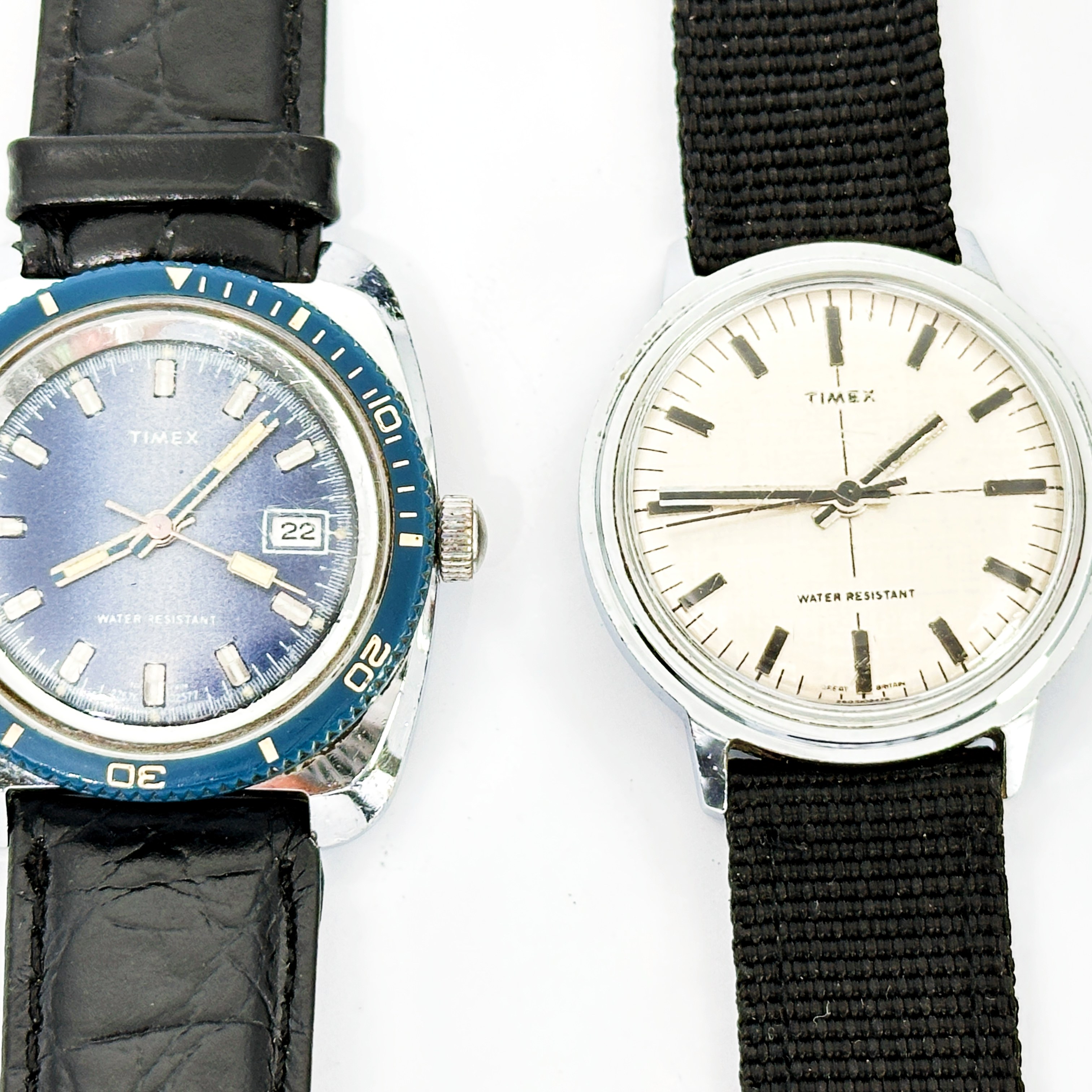 Zegarki chromowane, mechaniczne. Diver z datownikiem 36 mm, drugi 35 mm. Zegarki na chodzie. Stan wizualny bardzo dobry, widoczny na zdjęciach