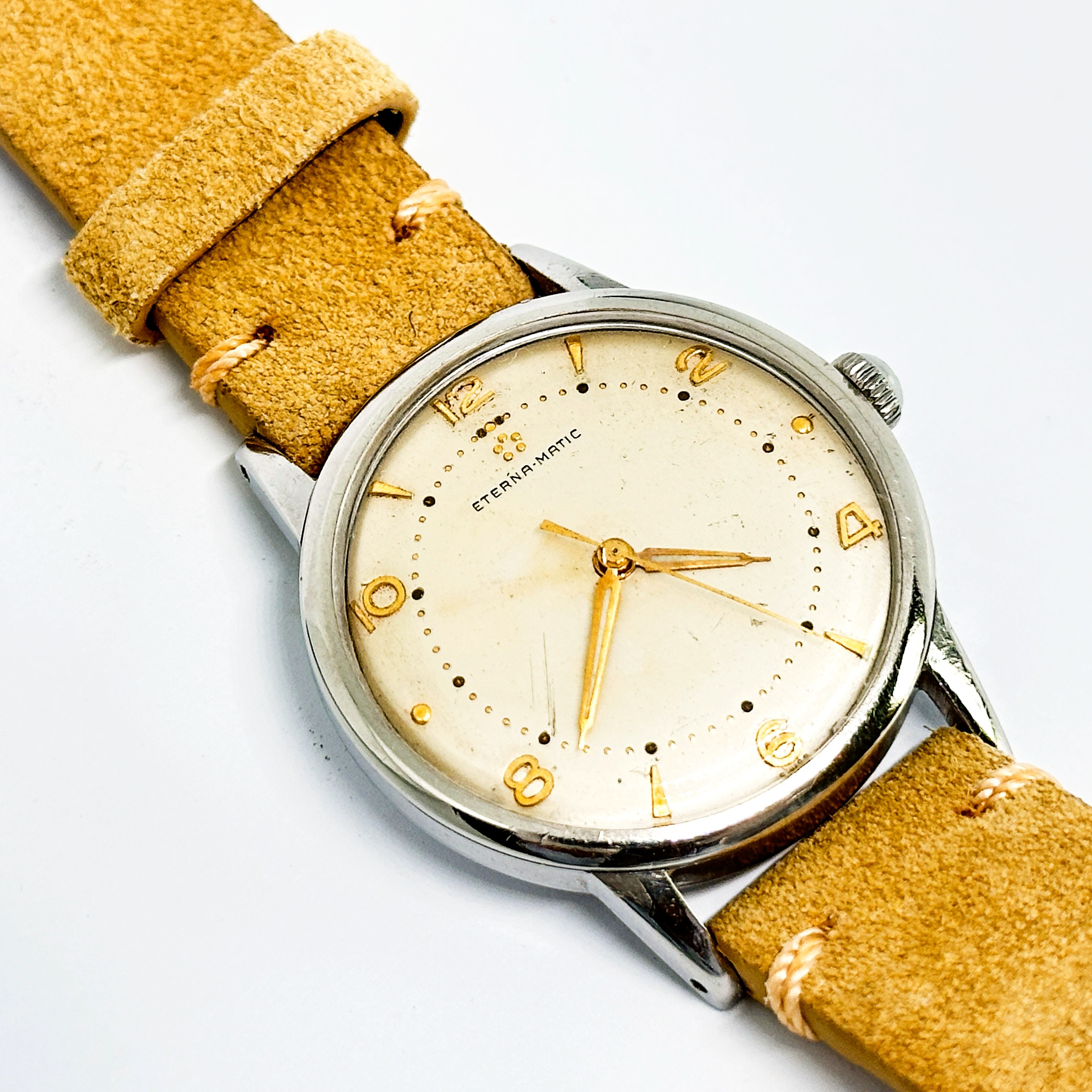 Zegarek stalowy, automatyczny Cal. 1254 UC. Numery na deklu: 3645020. Nowy skórzany pasek. Zegarek rusza, natomiast brakuje wahnika. Stan wizualny bardzo dobry, widoczny na zdjęciach