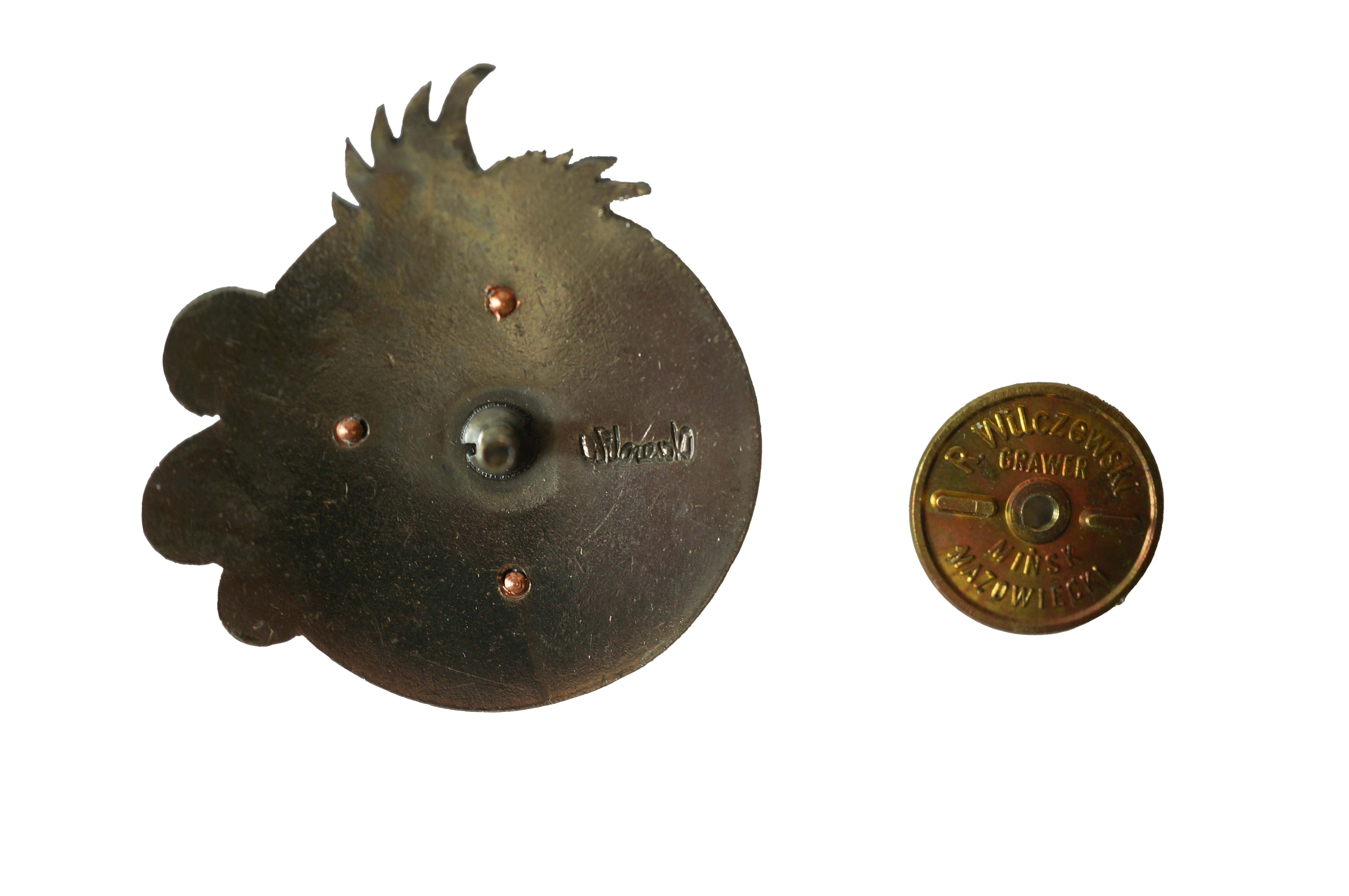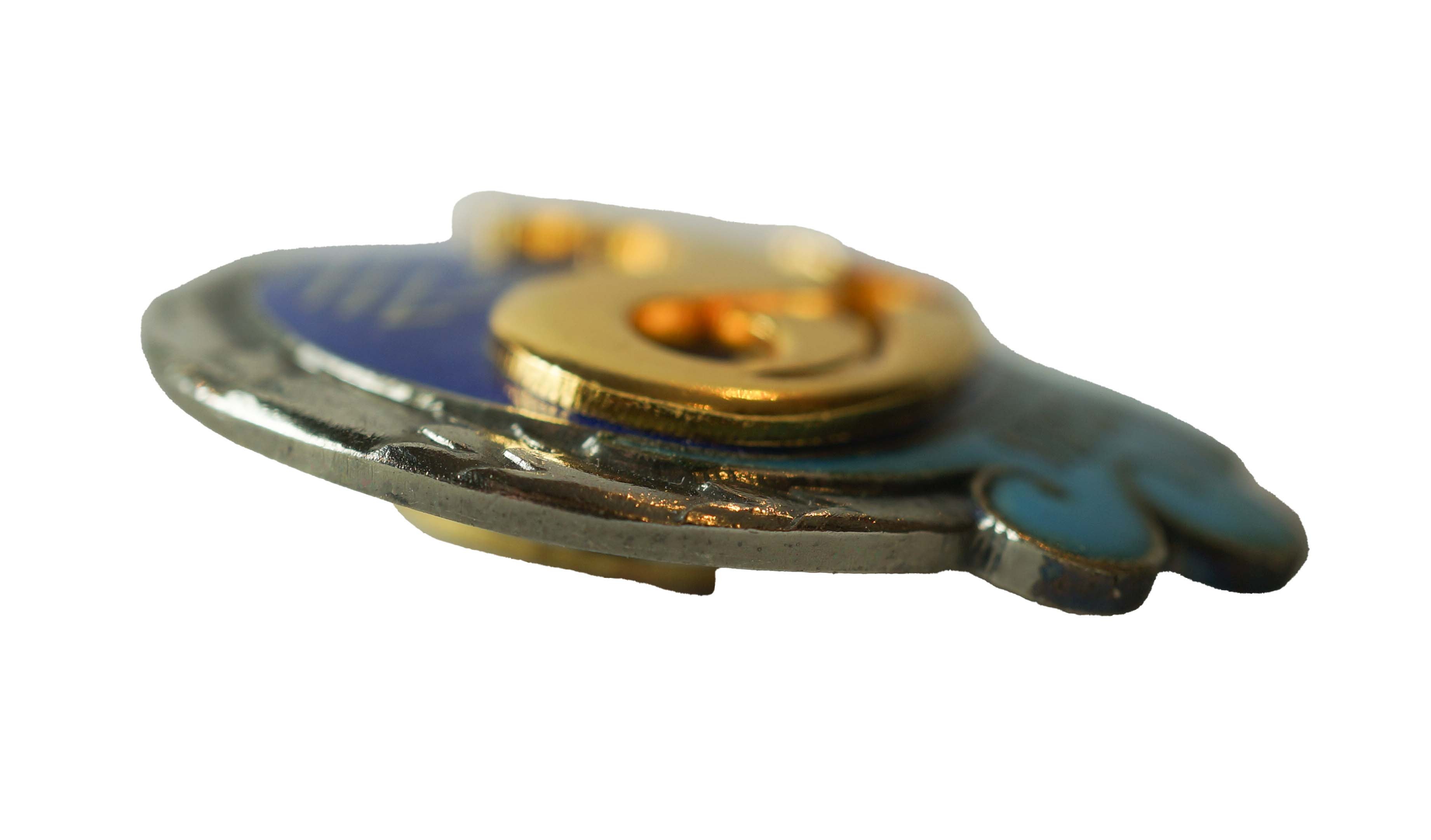 Odznaka 1 Pułk Lotnictwa Myśliwskiego "Warszawa" - Mińsk Mazowiecki, wersja: syrenka złocona - obła, wymiary: 48x45mm, nakrętka sygnowana: R.Wilczewski, Mińsk Mazowiecki