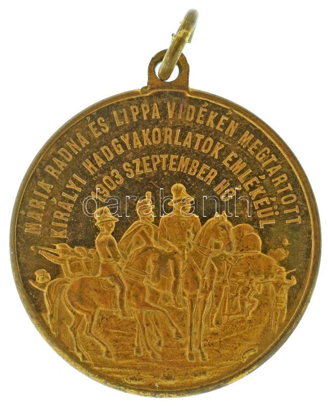 1903. "Mária Radna és Lippa vidékén megtartott királyi hadgyakorlatok emlékéül - 1903 szeptember hó" aranyozott bronz emlékérem füllel (29mm) T:AU,XF / Hungary 1903. "Mária Radna és Lippa vidékén megtartott királyi hadgyakorlatok emlékéül - 1903 szeptember hó" gilt, bronze commemorative medallion (29mm) C:AU,XF