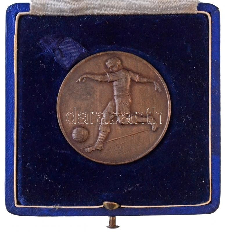 1942. "RADVÁNY VÁNDORDÍJ III." Br labdarúgó díjérem eredeti dobozában ("BOCZÁN KÁROLY BUDAPEST VIII. CSOKONAI U. 8.") (40mm) T:1-