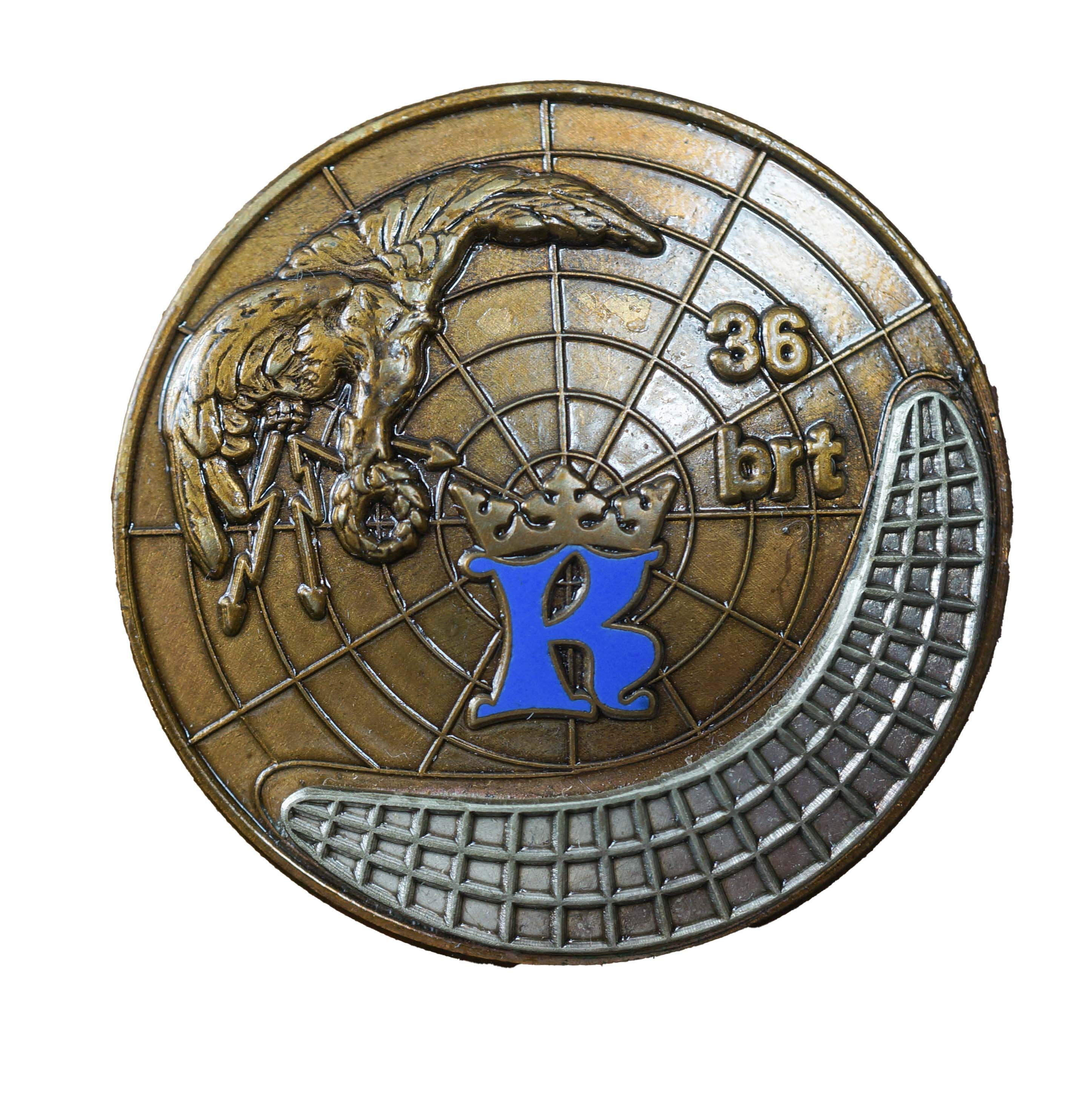 Odznaka 36 Batalion Radiotechniczny - Kraków , wersja brązowiona, bez emalii ze zmianami rysunku , wymiary: 39mm, nakrętka sygnowana: Sroka - N.Huta