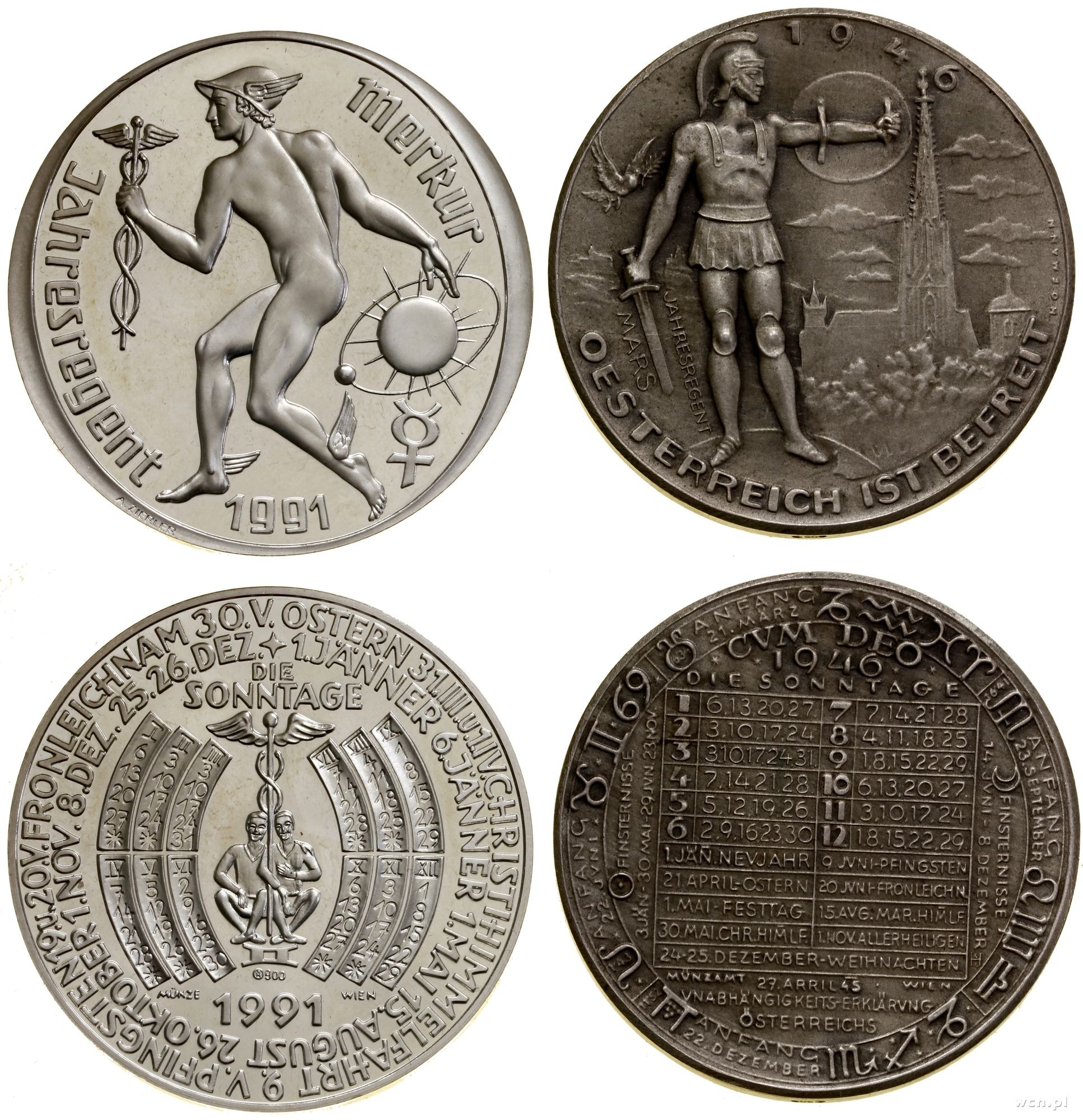 w skład zestawu wchodzi medal z kalendarzem na 1946 rok oraz na 1991 rok