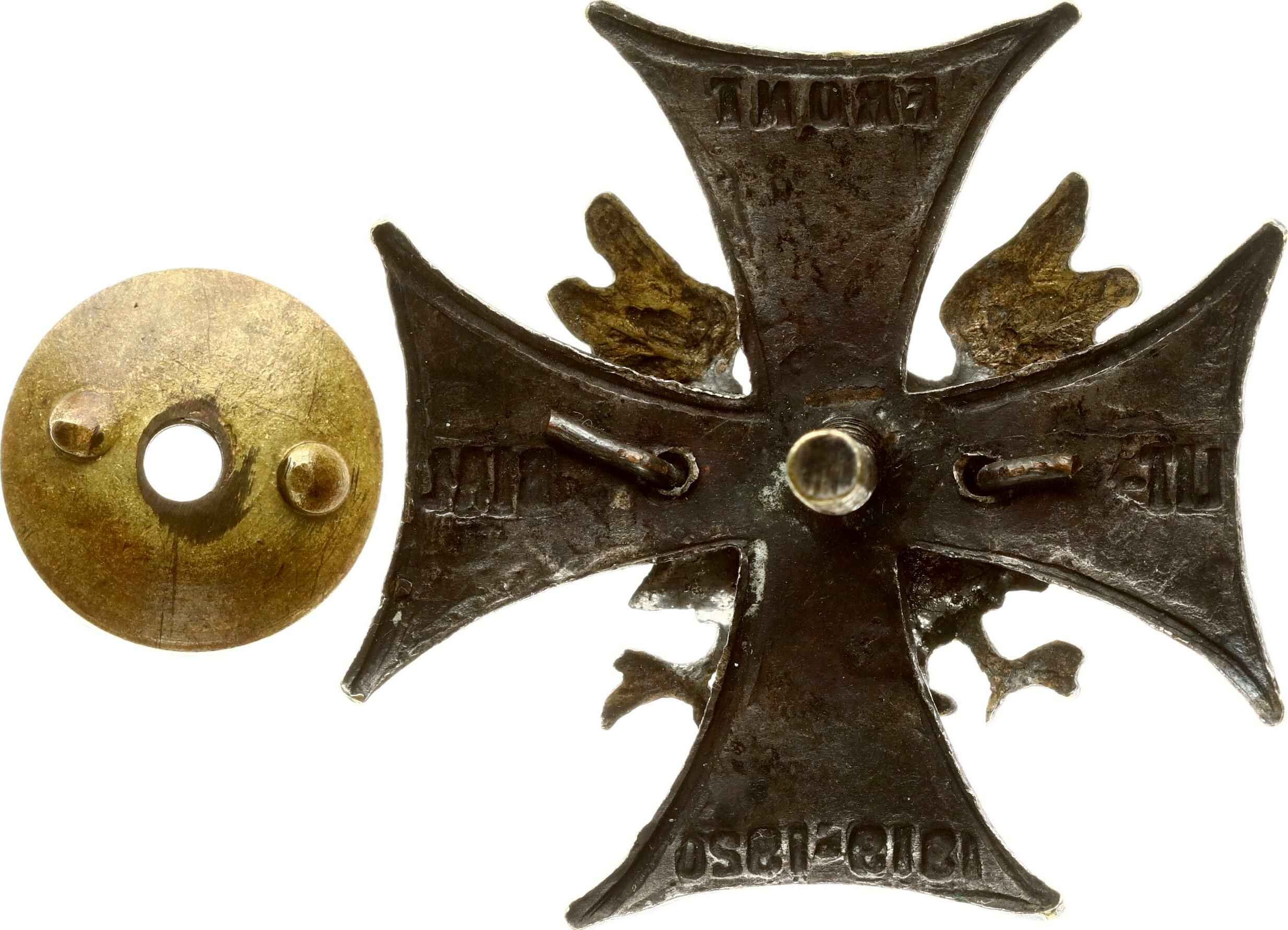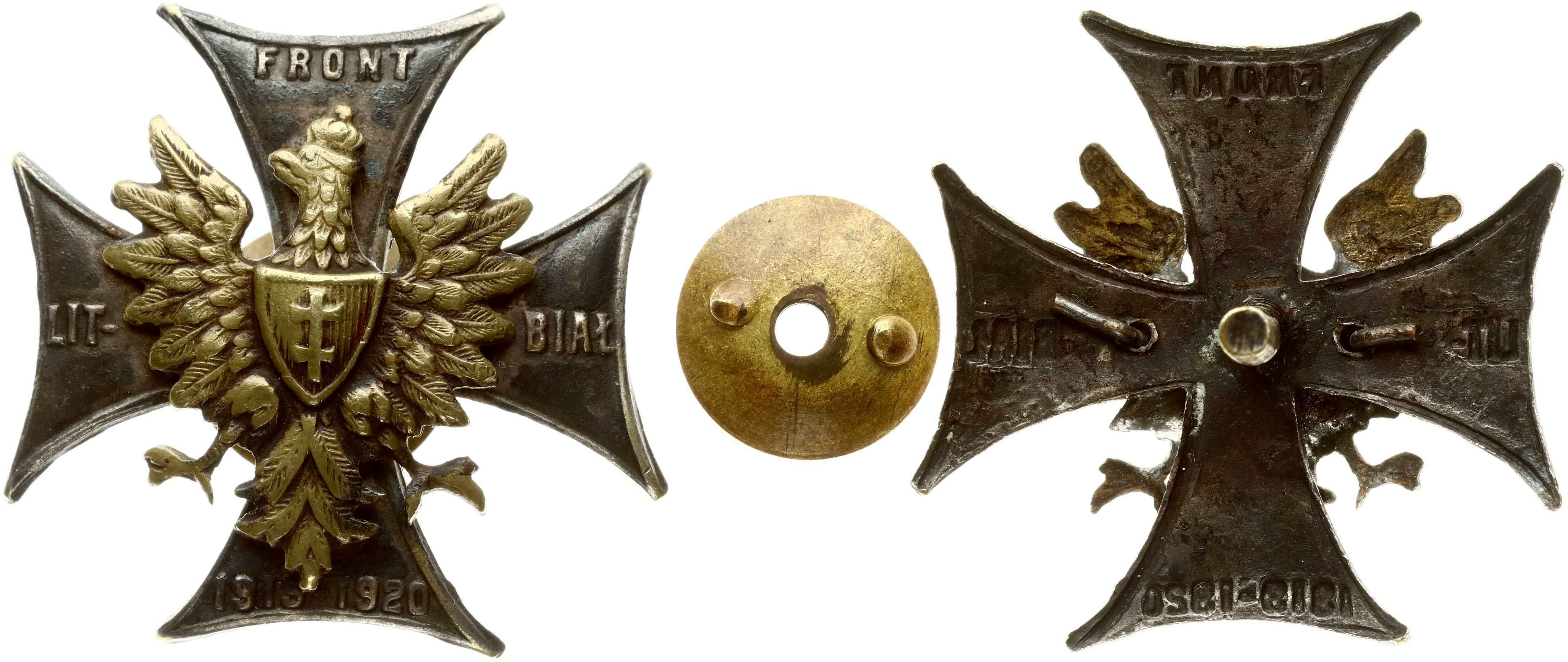 Lituanistics. Badge Lithuanian-Belarus front 1919-1920. Variety: w/o serial number and small screwback nut. It was awarded to participants of anti-bolshevik wars. Brass, silvered brass 15.37 g, 40 x 40 mm.