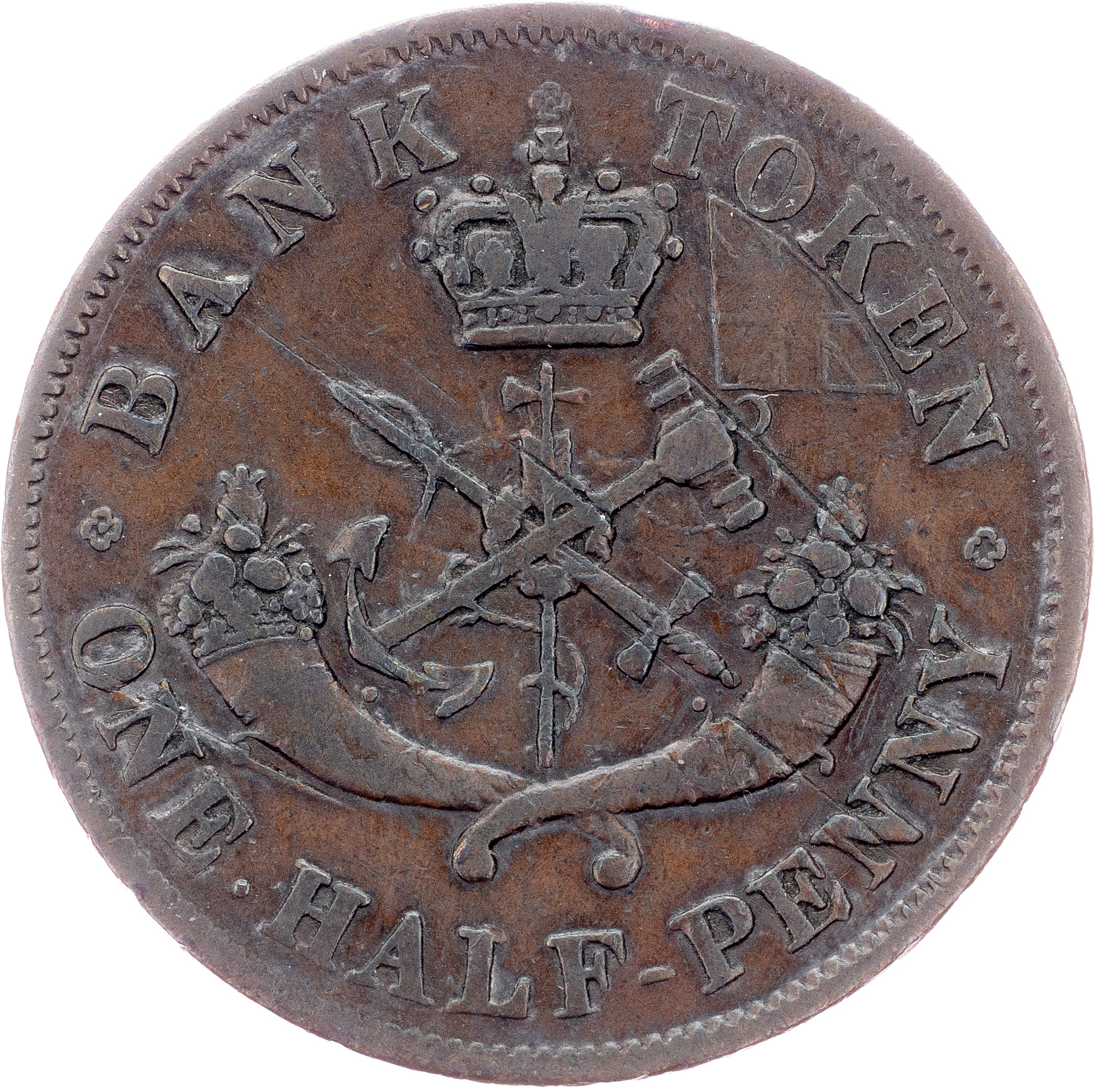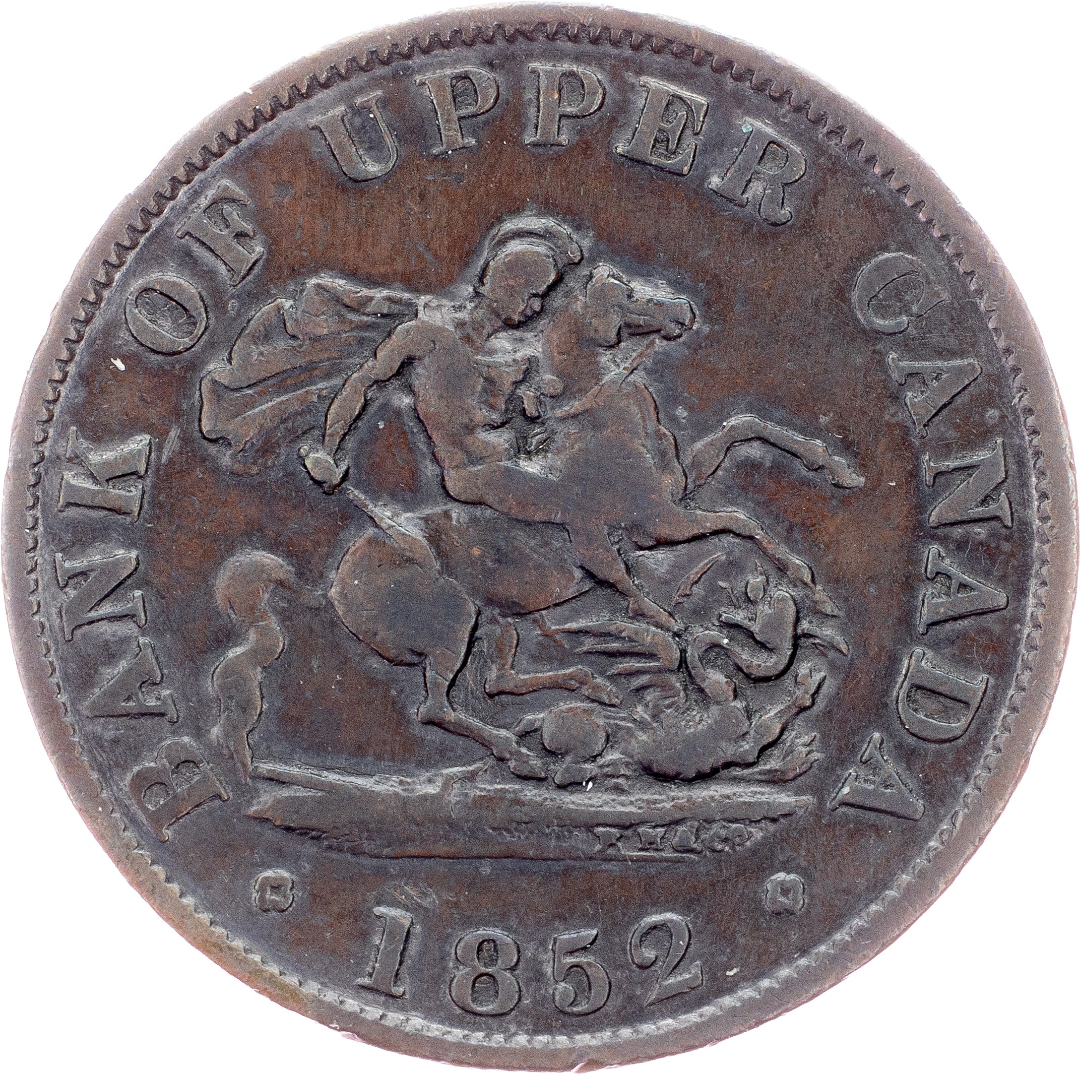 Canadian Provinces (Upper Canada), Upper Canada, 1/2 Penny 1852, Heaton, 7,532 g, Copper, CCT# PC-5, ↓↑; VF