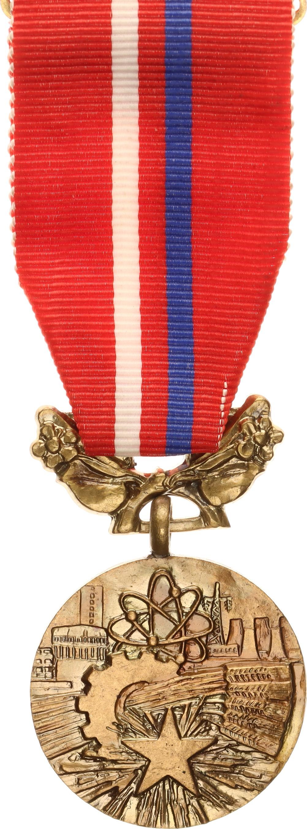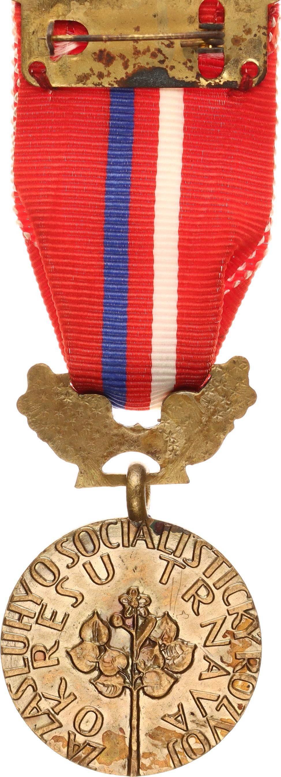 Pamětní medaile "Za zásluhy o socialistický rozvoj okresu Trnava" bronz 31 mm se závěswm a stuhou