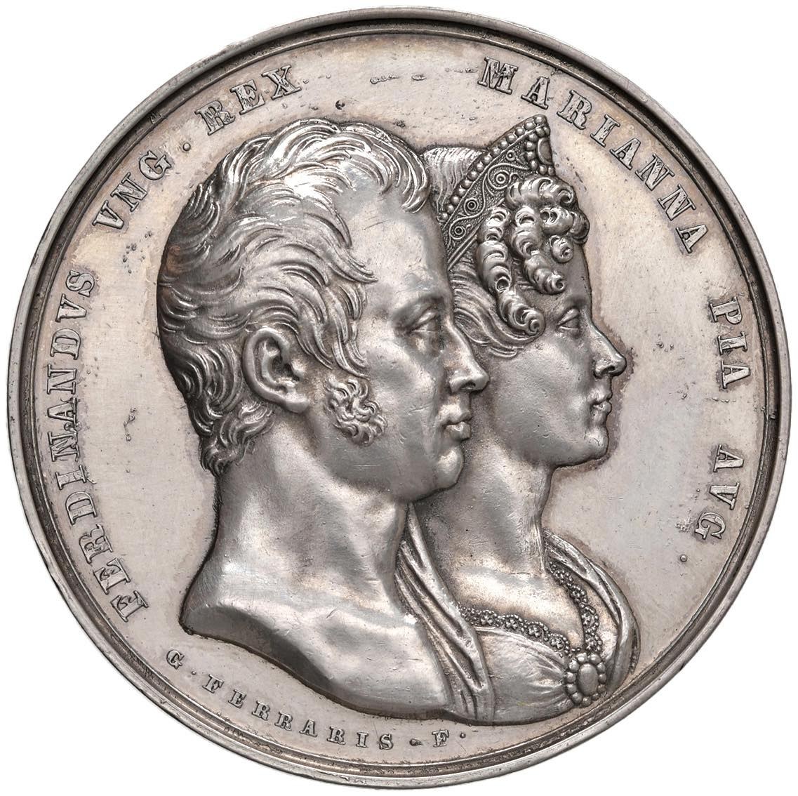 MODENA. Ferdinando I d'Absburgo-Lorena, re d'Ungheria dal 1830, imperatore d'Austria (1835-1848) Medaglia 1831 Nozze con Marianna Pia di Savoia - Opus: G. Ferraris - Turricchia, Sardegna 72; Med. Risorgimento 479 - R - AG (g 48,08 - Ø 46,5 mm) Colpetto e leggerissimi segnetti di contatto al bordo