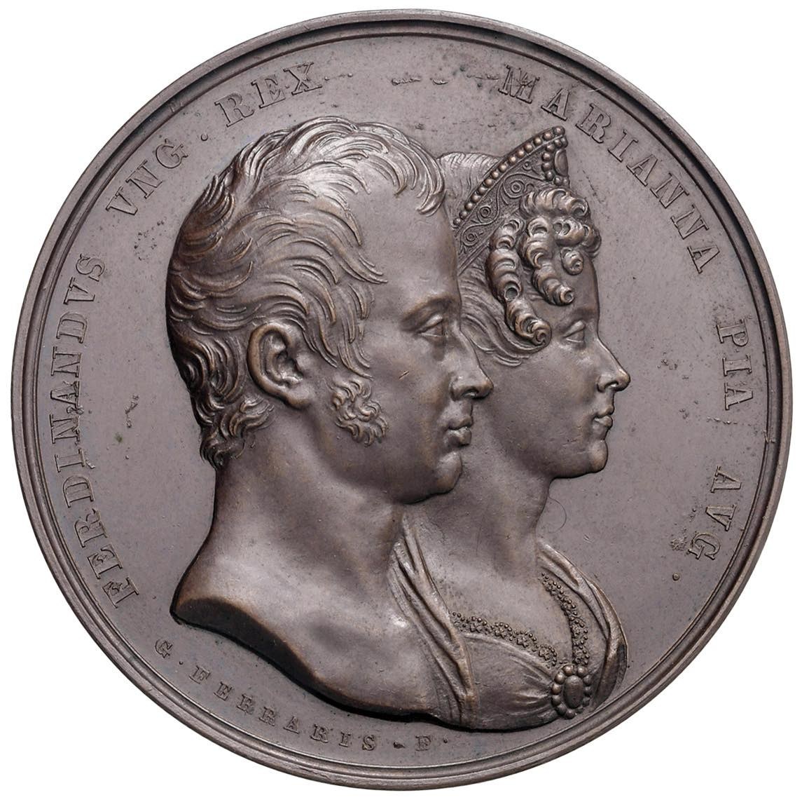 MODENA. Ferdinando I d'Absburgo-Lorena, re d'Ungheria dal 1830, imperatore d'Austria (1835-1848) Medaglia 1831 Nozze con Marianna Pia di Savoia - Opus: G. Ferraris - Turricchia, Sardegna 72; Med. Risorgimento 479 - AE (g 45,16 - Ø 46,5 mm) Leggerissimi segnetti di contatto al bordo