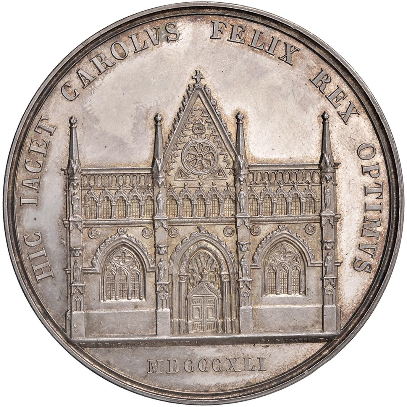 NAPOLI. Maria Cristina delle Due Sicilie (1806-1878) Medaglia 1841 Per l'inumazione di Carlo Felice alla badia di Altacomba - Opus: G. Galeazzi - Turricchia 143; Ricciardi 173 - RR - AG (g 89,25 - Ø 56 mm) Rarissima coniazione in argento, leggerissimi segnetti di contatto al bordo
