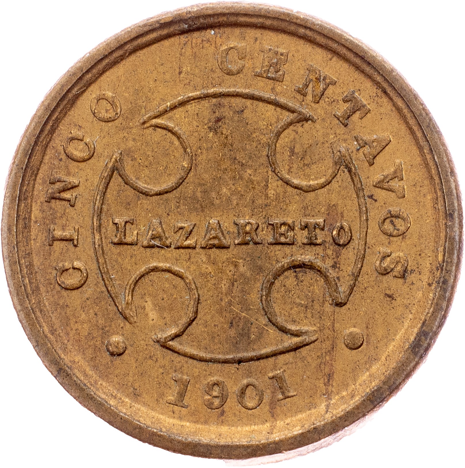 Colombia, Republic, 5 Centavos 1901, Bogota, 2,409 g, Brass, KM# L2, Leprosarium coinage token, mintage only 15000pcs; EF