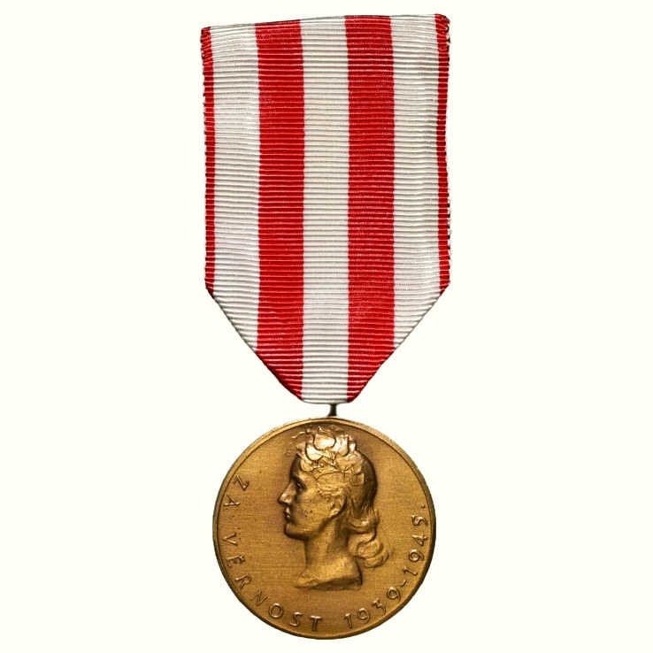 ČSR, Pamětní medaile Na paměť druhého národního odboje - Za věrnost, 1939/1945, bronz, stuha, etue