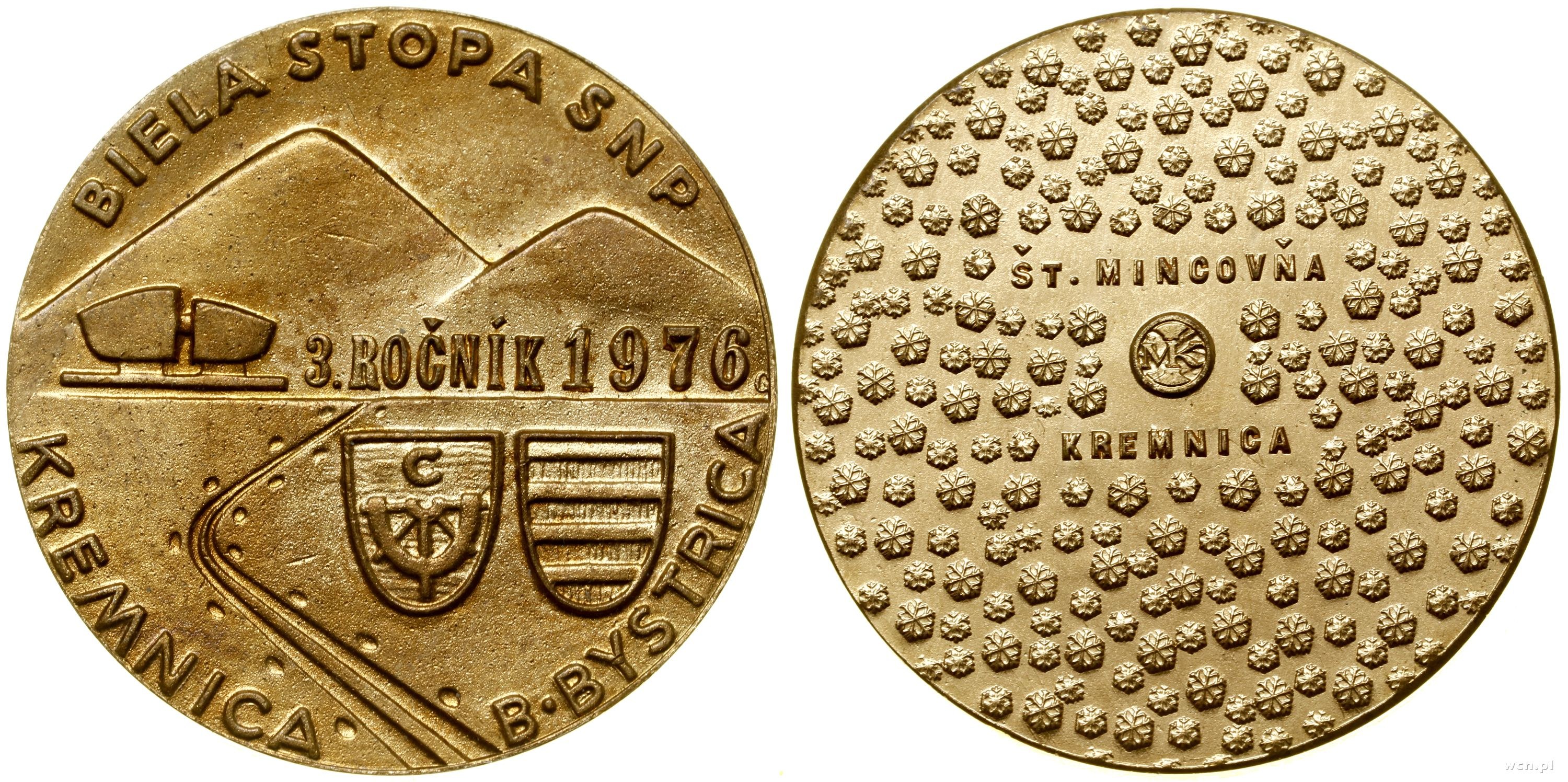 Aw: Dwie góry, niżej 3. ROČNÍK 1976, niżej herb Kremnicy i Bańskiej Bystrzycy, BIELA STOPA SNP - KREMNICA - B • BYSTRICA, Rw: ŠT. MINCOVŇA / KREMNICA, wokół rozety
