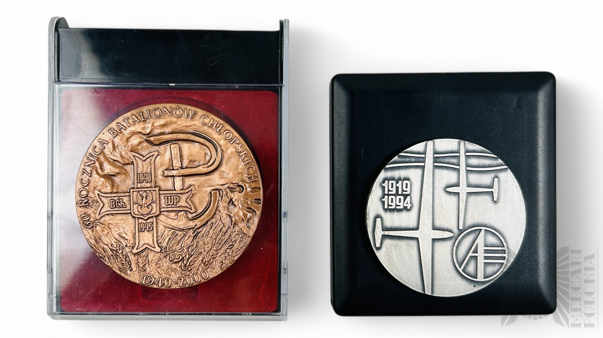 Dwa Medale Pamiątkowe: 60 Rocznica Batalionów Chłopskich / Generał Franciszek Kamiński, 75 Lat Aeroklubu Polskiego