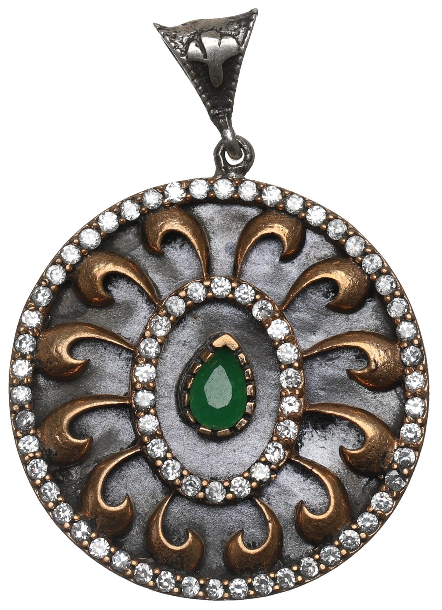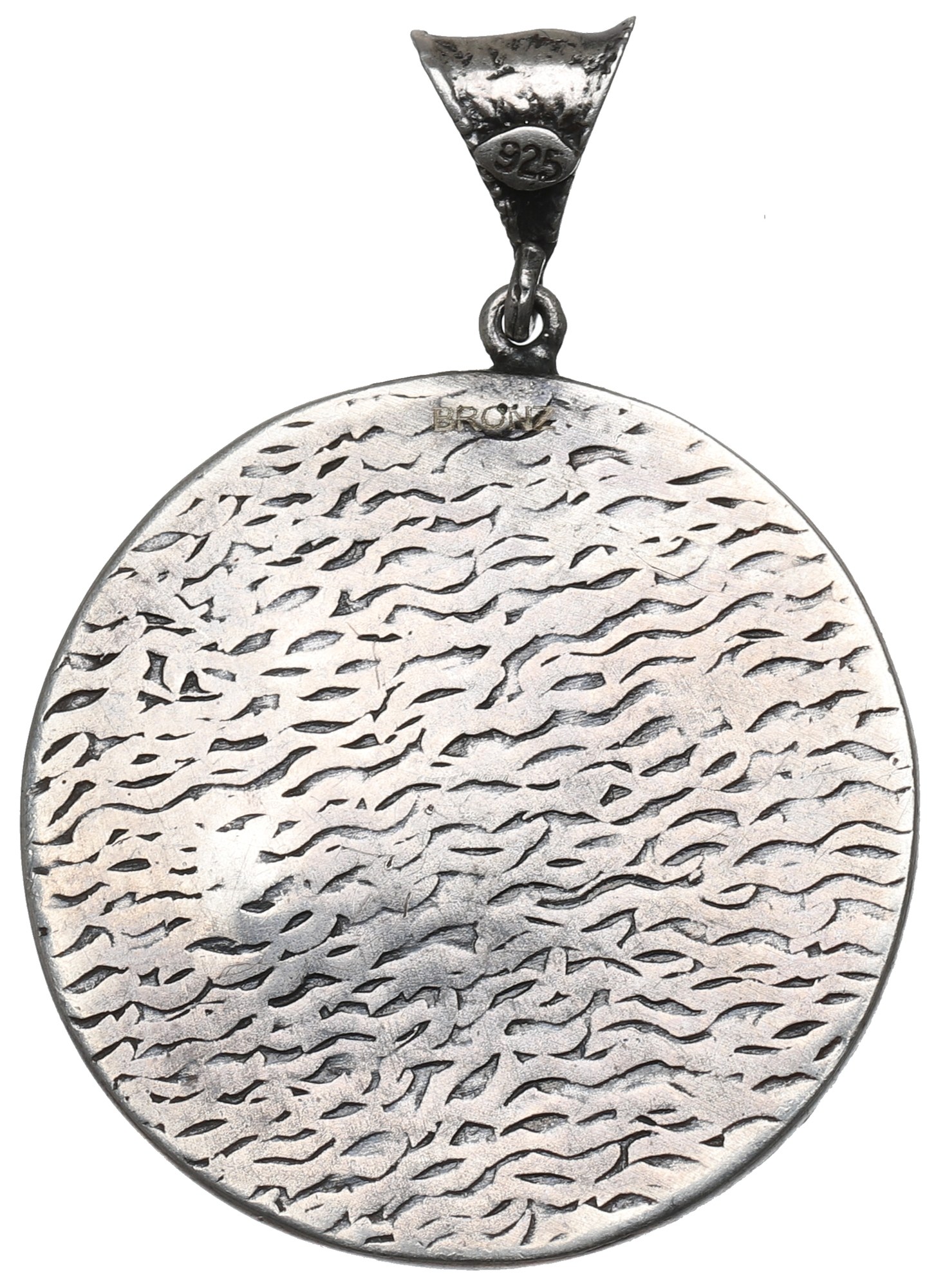 Ciekawy wyrób. Medalion z brązu srebrzonego, zawieszka w srebrze.