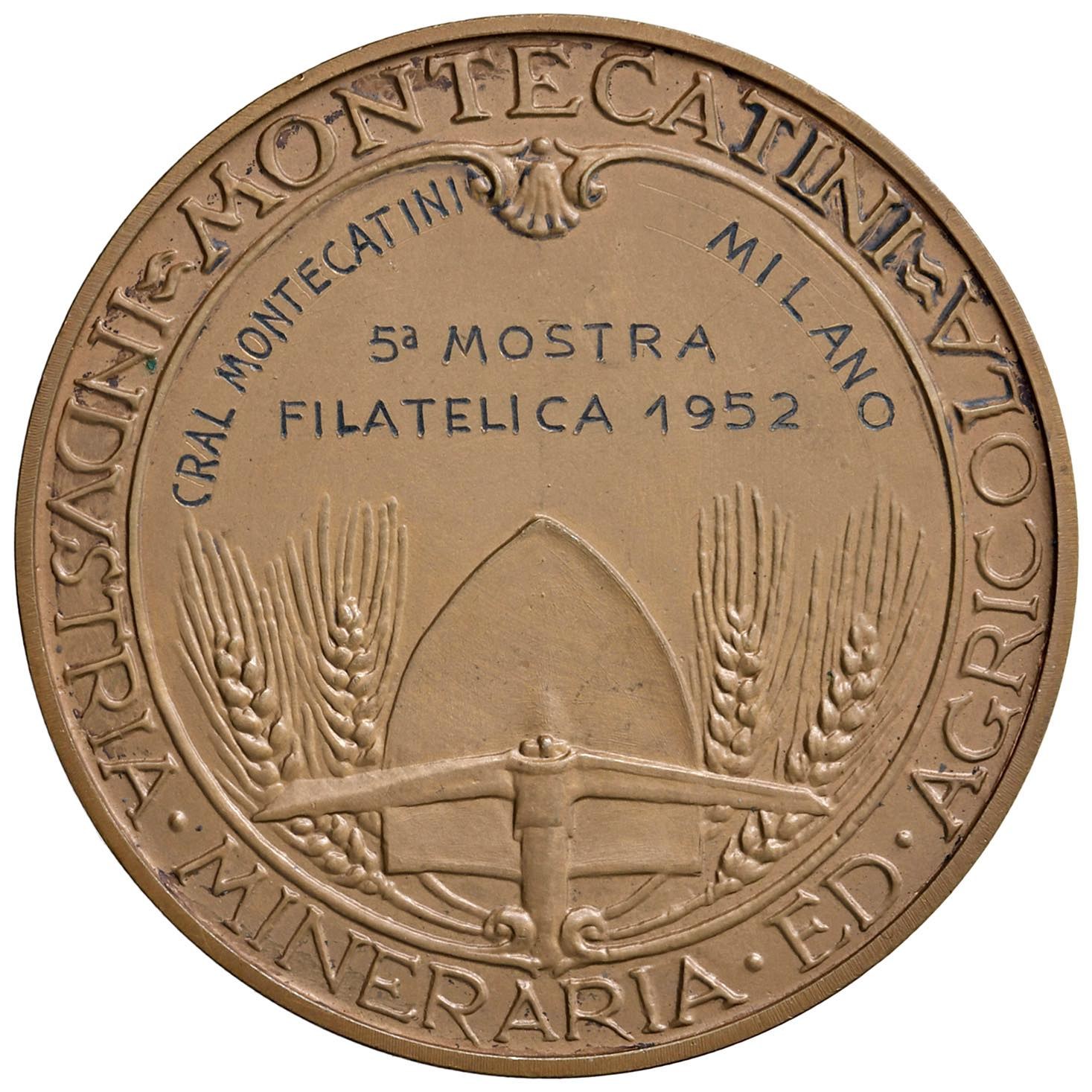 FASCISTE. Medaglia senza data INDVSTRIA MINERARIA ED AGRICOLA MONTECATINI,Pala su fascio orizzontale sovrapposta a spighe disposte a raggiera 1852 dedicata - Opus: Mistruzzi - AE (g 83,56 - Ã