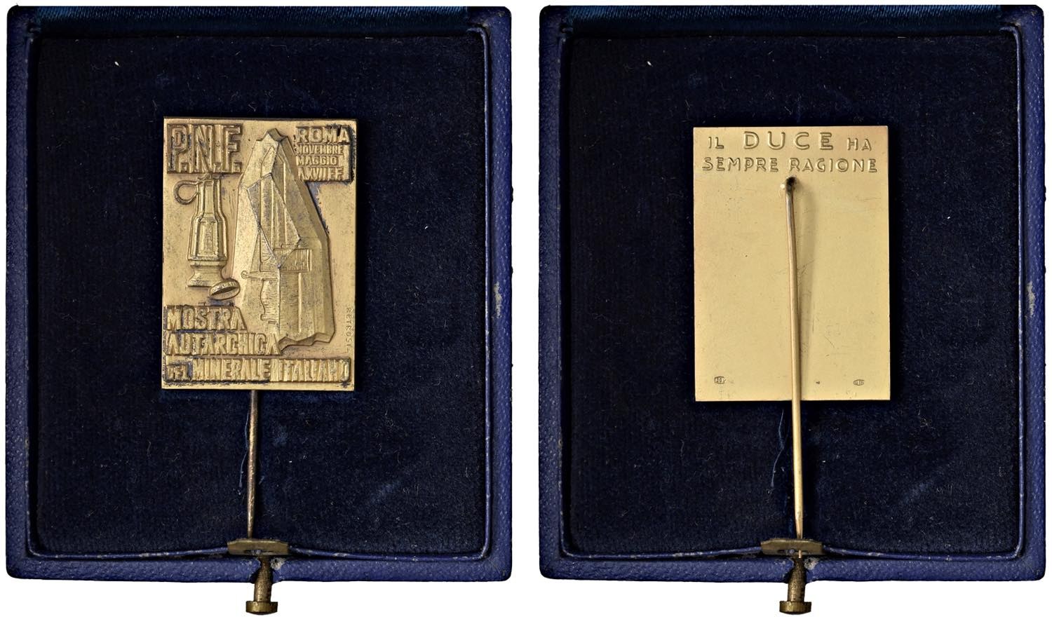 FASCISTE. Ventennio (1922-1943) Medaglia a spilla A.XVII (1939) P.N.F. Mostra Autartica del Minerale Italiano, Roma. Il Duce ha sempre ragione - Opus: Retrosi - AG 800 (g 11,68 - Ã