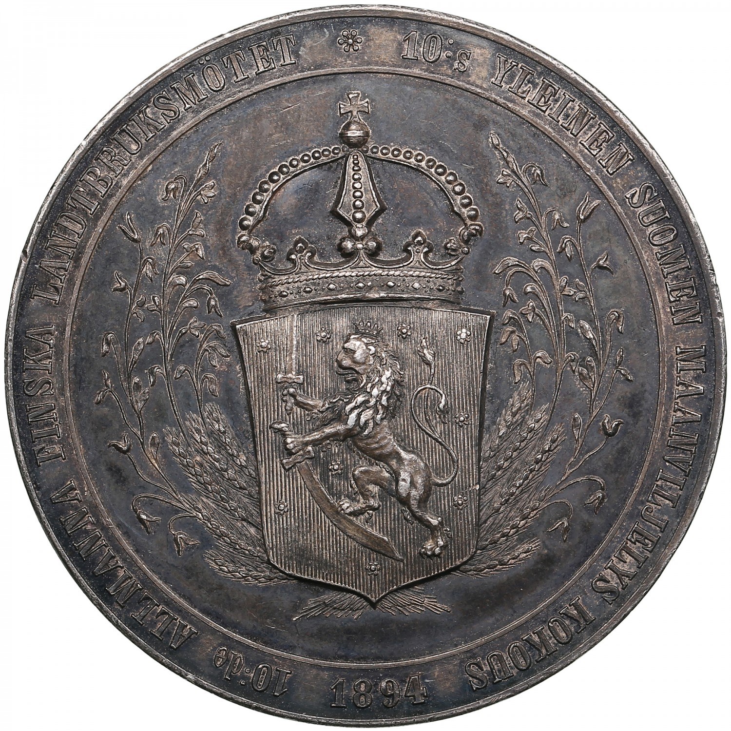 Finland (Russia, St.Petersburg mint) Silver Prize Medal 1894 - 10th Agricultural Exhibition in Vaasa - Alexander III (1881–1894)