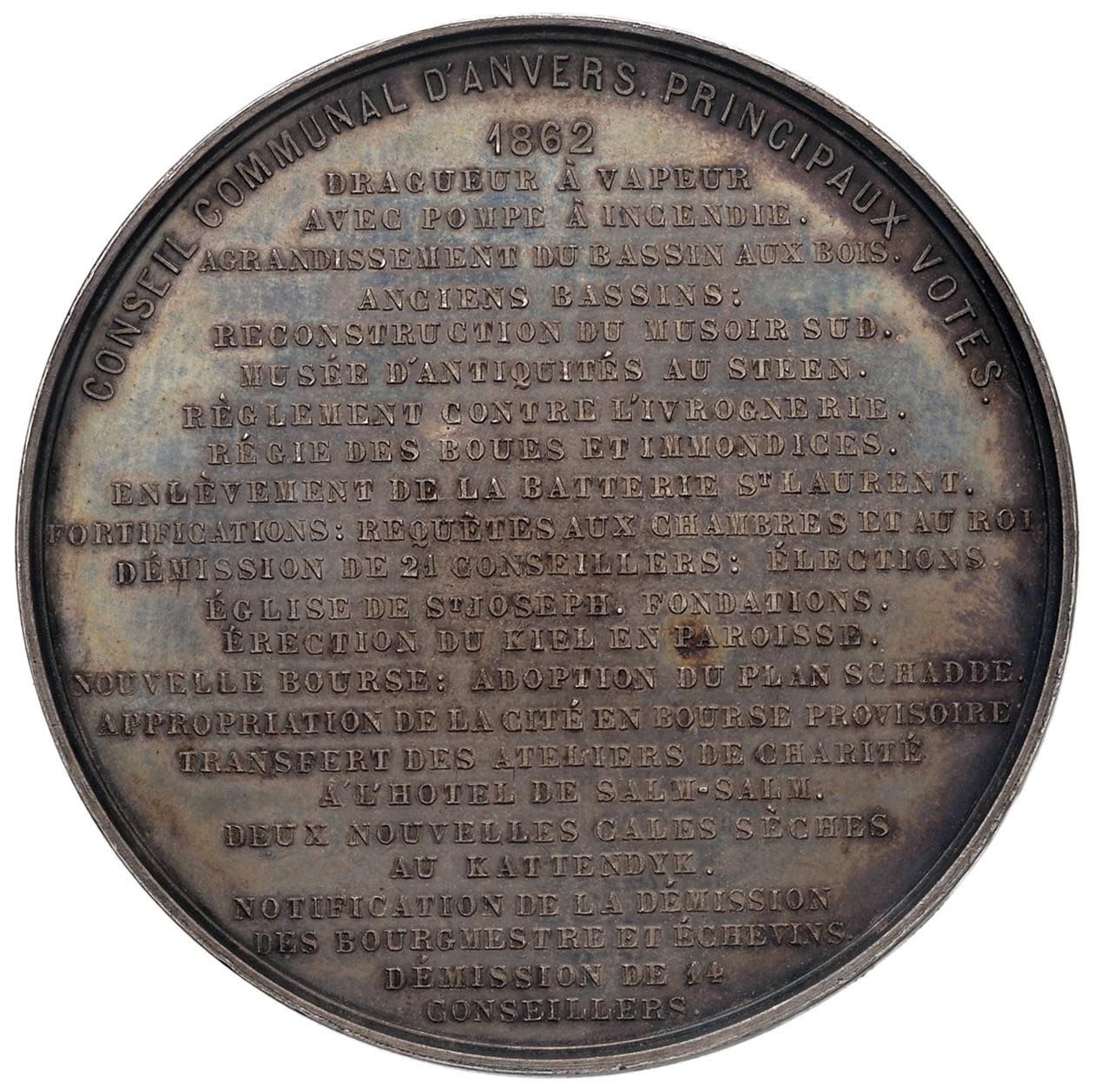 BELGIO Medaglia 1862 Costruzone del Grande Bacino Idrico di Anversa - Opus: Wiener - RR- AG (g 39,69 - Ø 51 mm) Rara medaglia