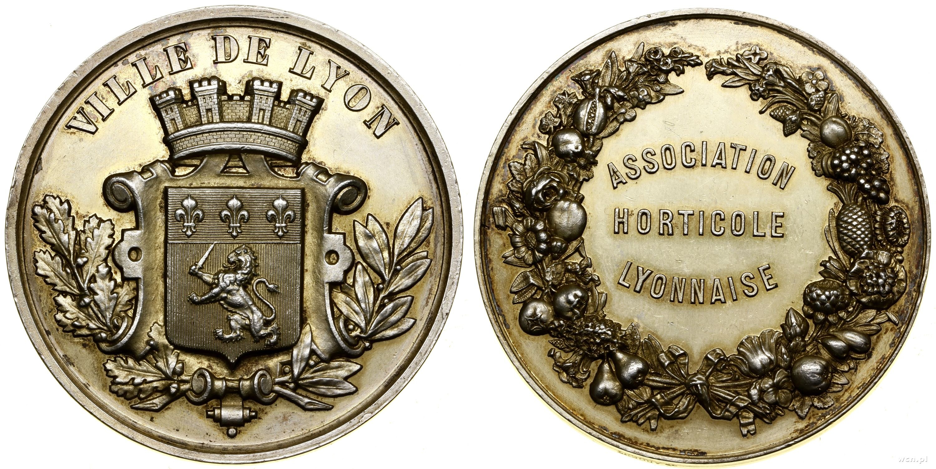 Aw: Herb Lyonu, VILLE DE LYON, Rw: Wieniec,w. którym ASSOCIATION / HORTICOLE / LYONNAISE, Obrzeże: Punca ARGENT