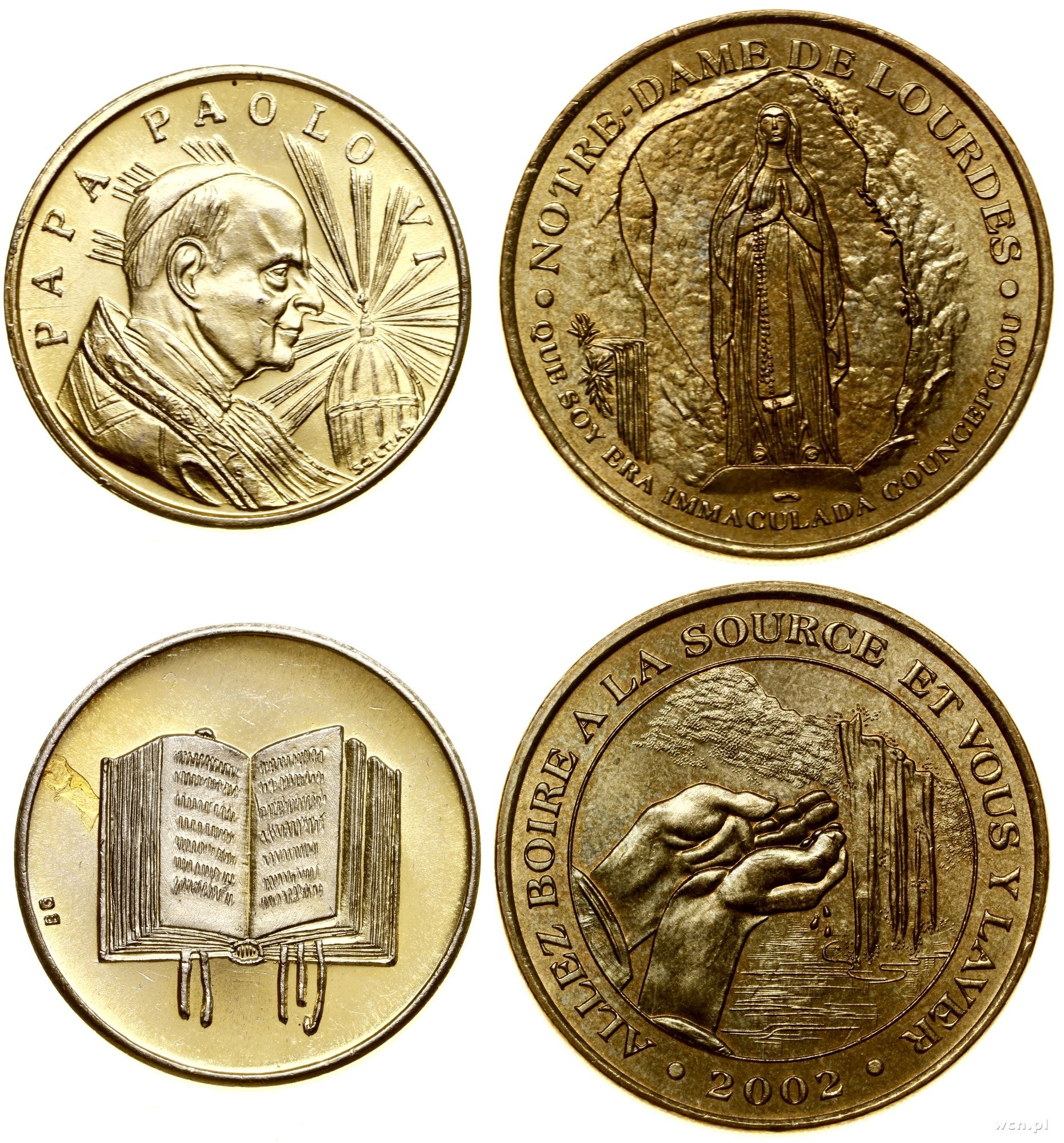 w skłąd zestawu wchodzi żeton z Matka Bożą z Lourdes oraz papieżem Pawłem VI
