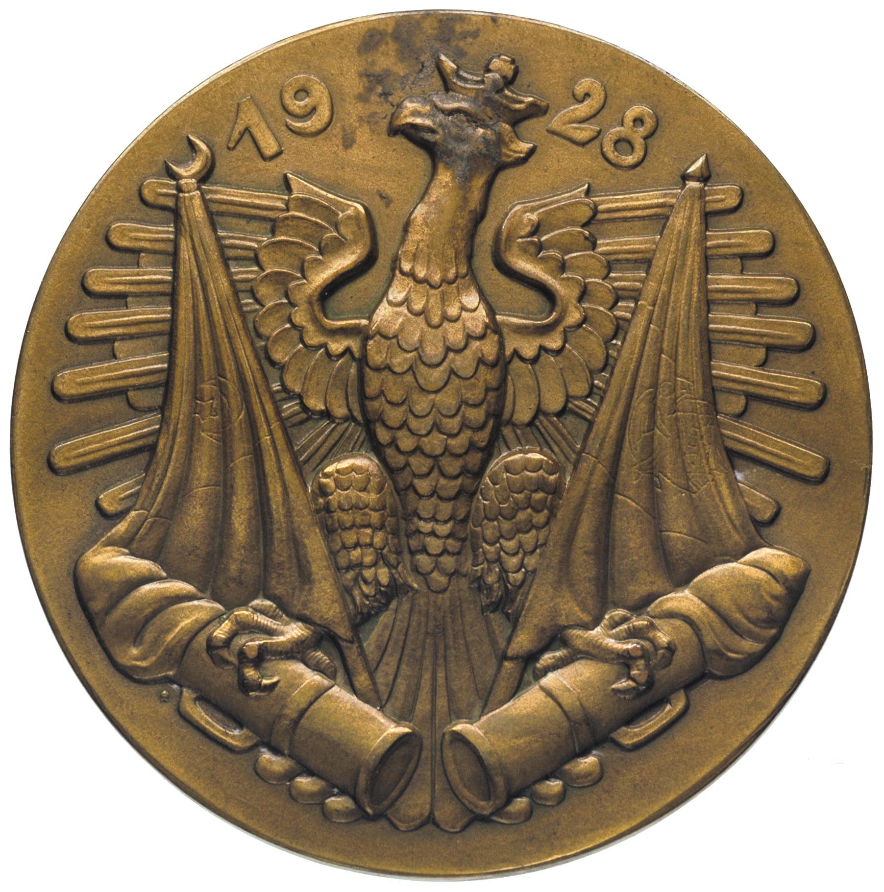 POLSKA, generał Józef Bem-medal autorstwa St. Popławskiego 1928 r., Aw: Popiersie na wprost i napis w otoku, Rw: Orzeł z łapami na lufach armatnich, po boku sztandary, u góry data, brąz 55 mm, Strzałkowski 618