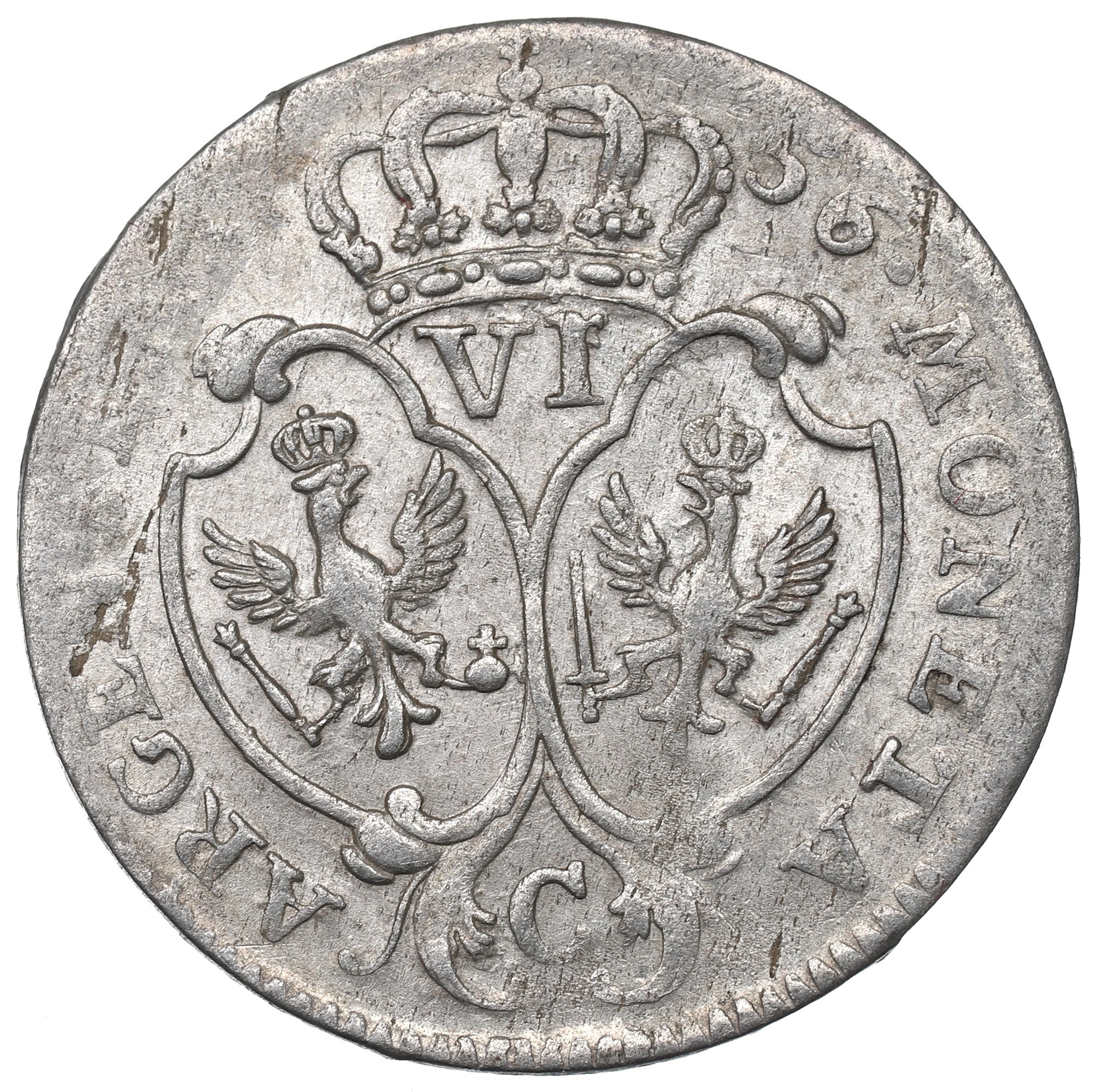 Ładny przykład szóstaka pruskiego z rzadszej w handlu mennicy.