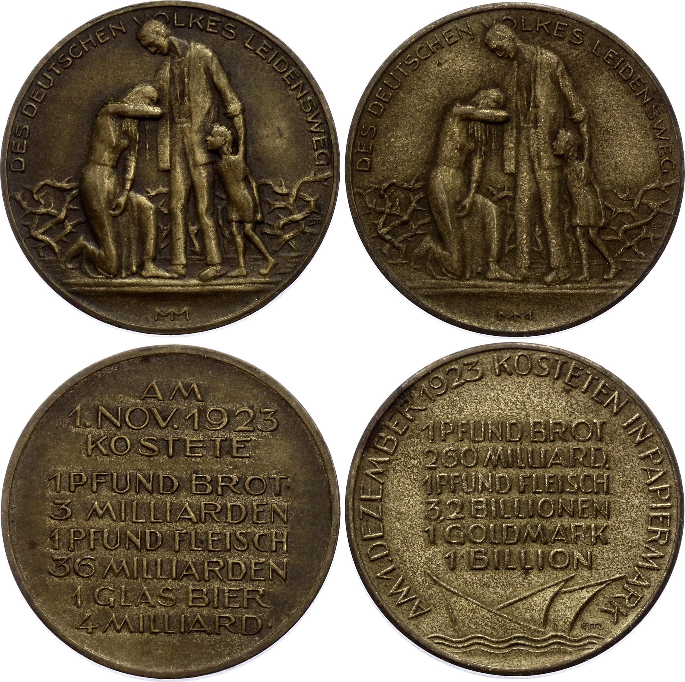 Germany - Weimar Republic Lot of 2 Medals People Ordeal / Inflation of 1923