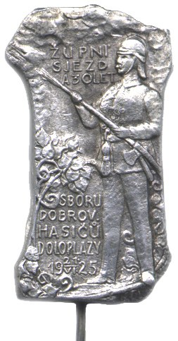 Doloplazy - Župní sjezd a 30 let sboru dobrov. hasičů 21.VI. 1925 ražebna: KARNET-KYSELÝ Al 19x36 mm jehlice