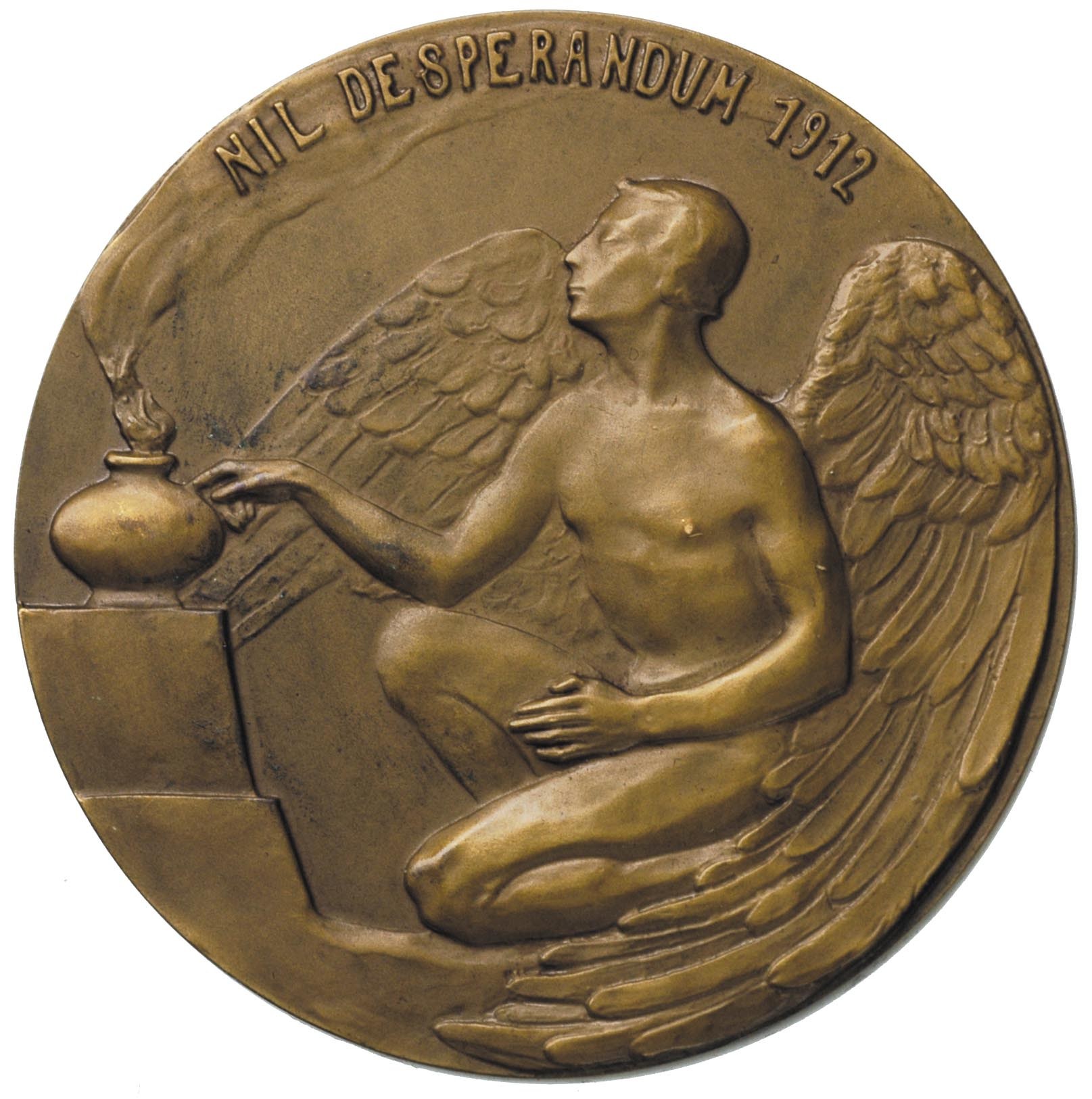 POLSKA, Hugo Kołłątaj-medal autorstwa St. Popławskiego 1912 r., Aw: Popiersie na wprost i napis w otoku, Rw: Skrzydlaty geniusz przed płonącym kagankiem, u góry napis NIL DESPERANDUM 1912, brąz 50 mm, Strzałkowski 232