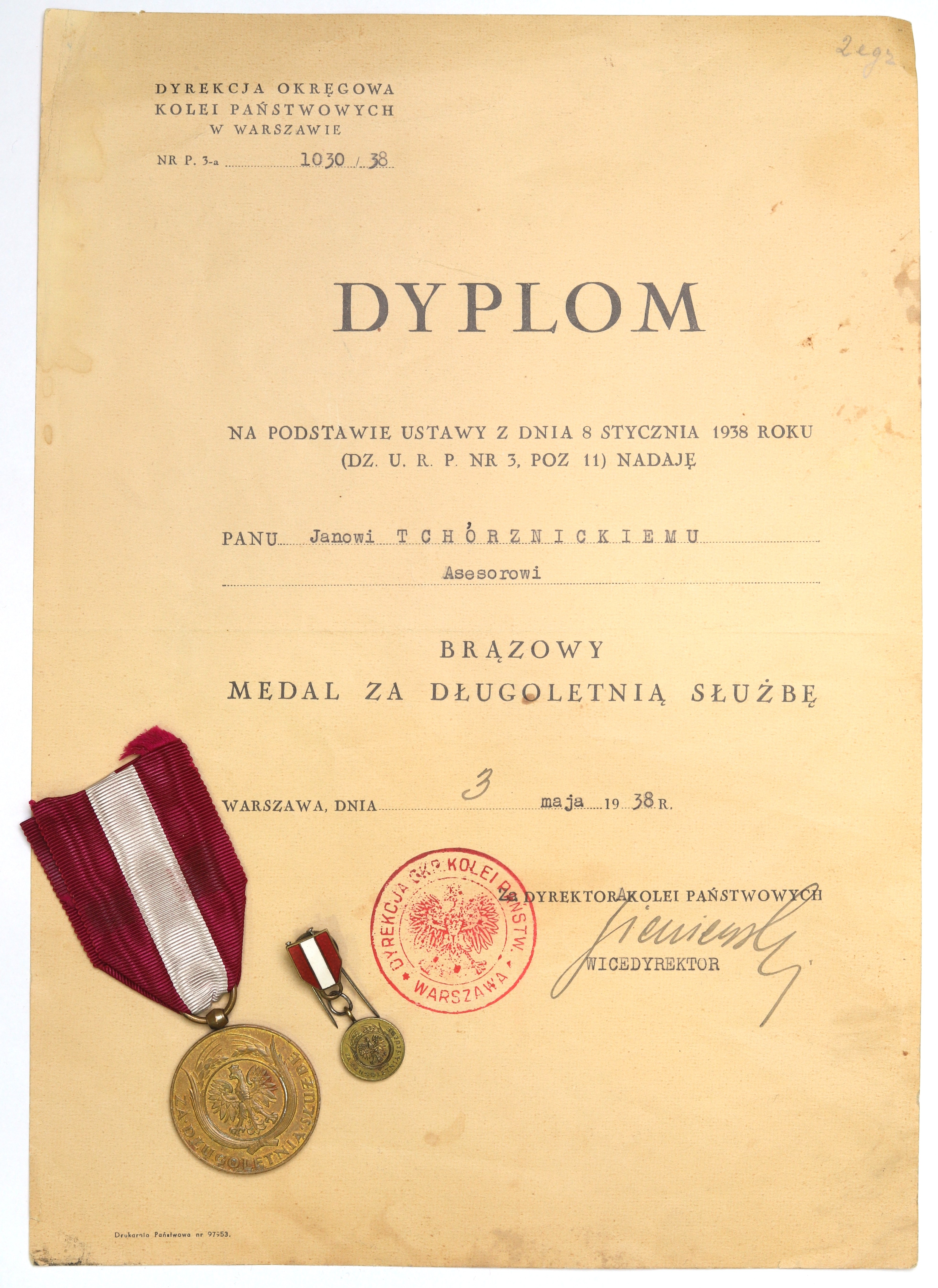 Komplet odznaczenie z miniaturą oraz dyplom nadaniowy