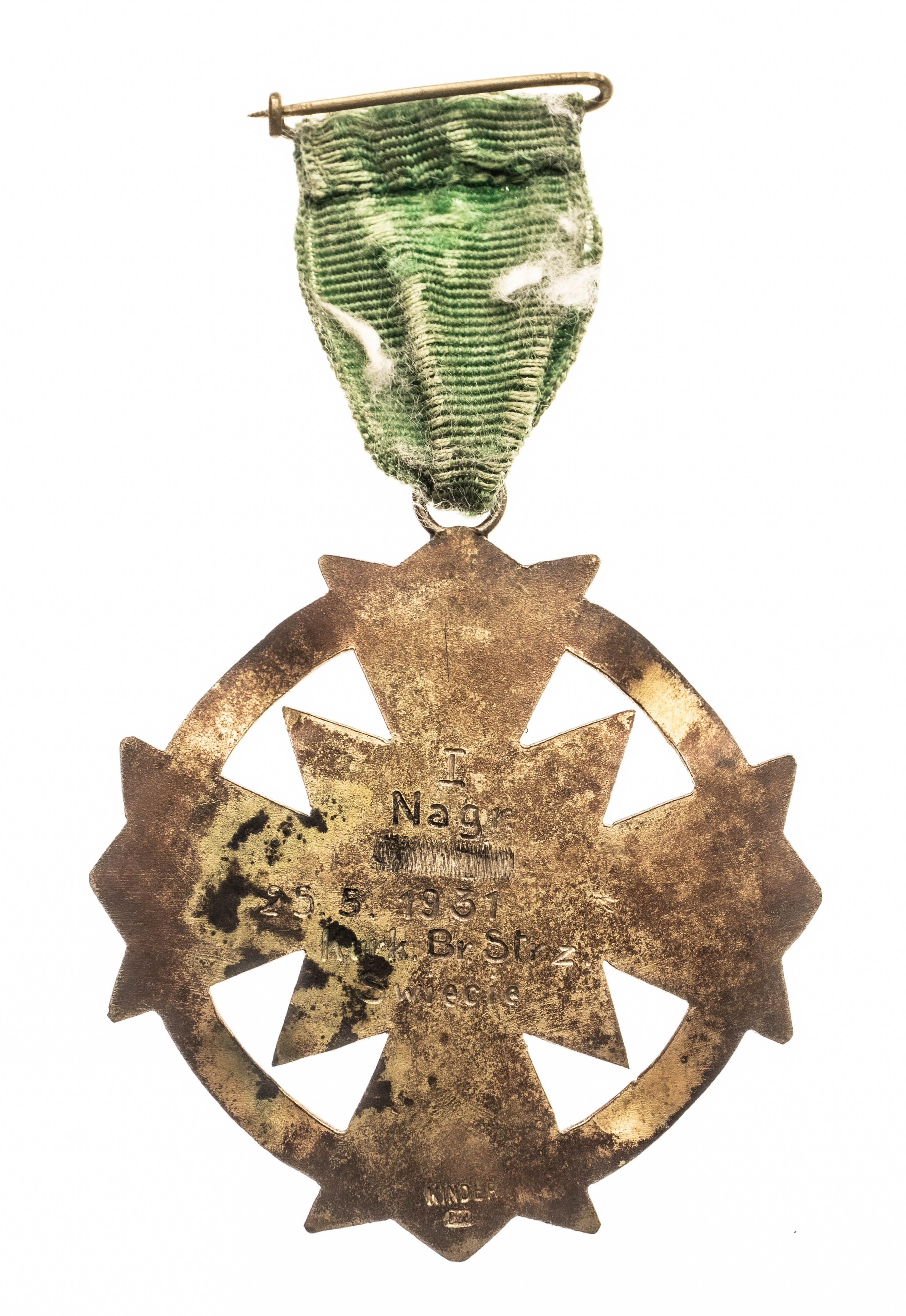 II RP, Odznaka Bractwo Strzeleckie, I Nagroda, Świecie 25.5.1931 r. Kinder, srebro próby 800, wym 58 x 60 mm., waga 23,10g. Stan bardzo dobry - .