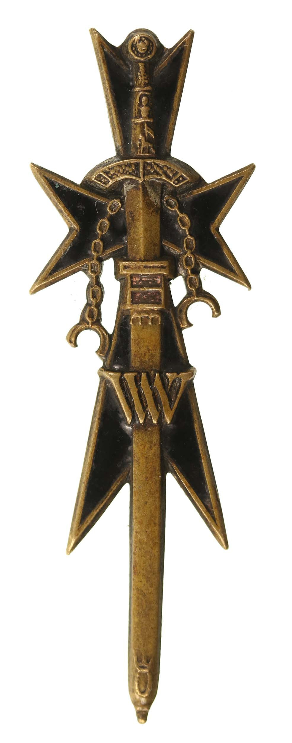 II RP, Odznaka Wojsk Wielkopolskich. Wym. odznaki 44 x 16 mm. Nakrętka właściwa, średn. 12 mm. Stan zachowania bardzo dobry.