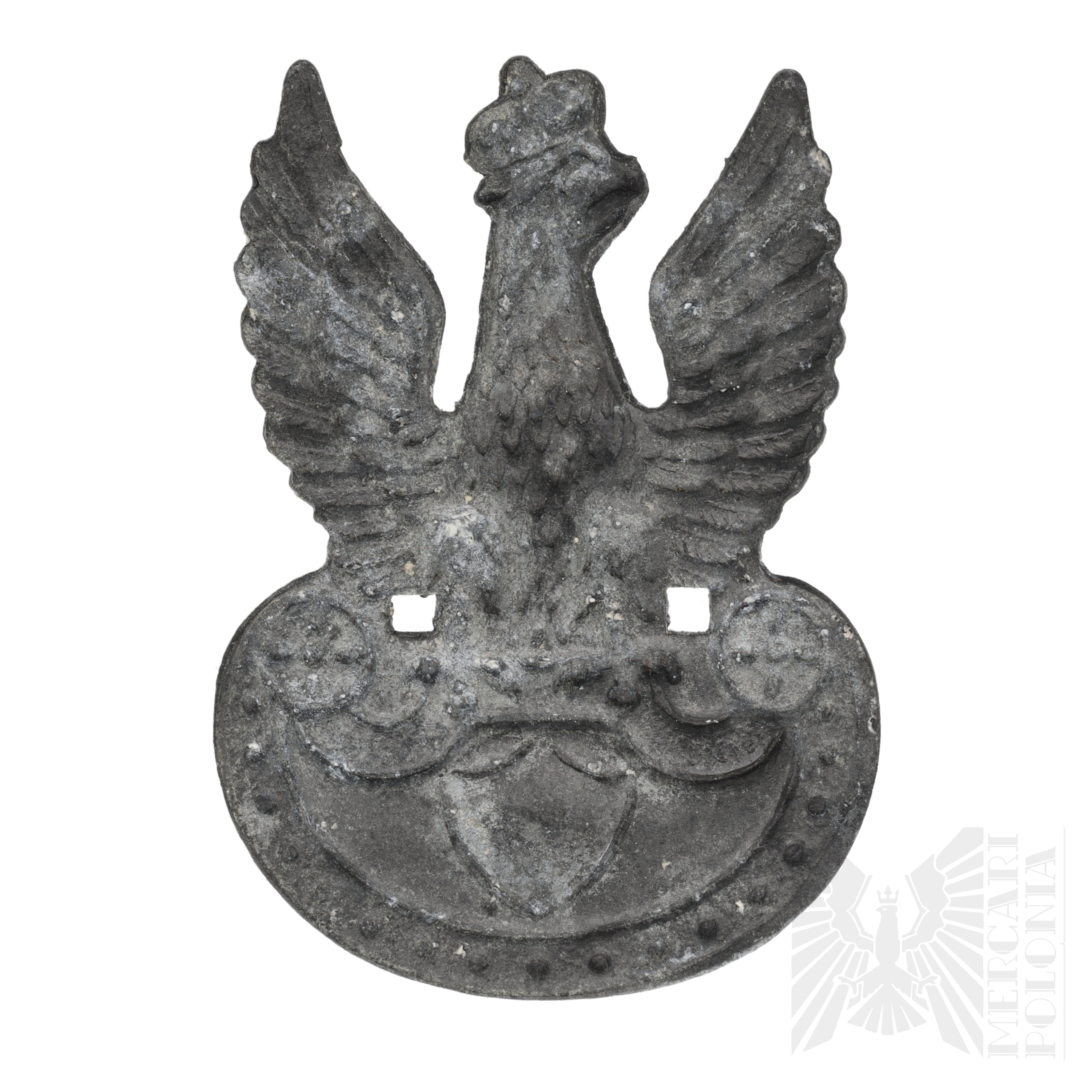 Odznaka w formie orła z rozpostartymi skrzydłami siedzącymi na amazońskiej tarczy. Głowa jest zwieńczona zamkniętą koroną.